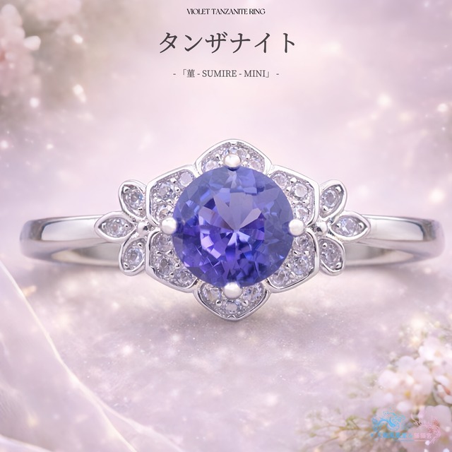 宝石:天然タンザナイト 宝石カット:ラウンドファセットカット 産地:タンザニア クラリティ:アイクリーン 素材:純正シルバー925(ロジウムコーティング/S925刻印入り) 石のサイズ:約5mm(約0.5ct) メレ石:7Aキュービックジルコニア ■リングのデザイン こちらは当店が構想から設計まで手がけた、完全オリジナルのリング枠。 枠の原案を手がけたデザイナーと製造工場が緻密に連携し、小さな花のようなフォルムに“咲かせたい想い”を込めた、特別な一品です。 5mmのラウンドサイズを基準に設計されたこのリング枠は、小ぶりでありながら洗練された存在感を放ちます。特に注目していただきたいのは、「花弁と葉っぱ」のバランス。 一般的な6mm用の市場流通枠では、センターストーンがやや大きすぎて葉のモチーフが埋もれがちになりますが、本作では石と周囲のデザインが引き立て合うよう、細かく調整を加えています。 ■宝石について まるで朝露に濡れたスミレの花が、そっと陽光を浴びて咲き誇るような気品。 中央には、青とすみれ色が繊細に溶け合うタンザナイトを使用しました。 見る角度や光の加減によって、澄んだブルーから優美なパープリッシュバイオレットへと表情を変え、静かに輝きを放ちます。 タンザナイトは「知性・冷静・高貴」を象徴するとされ、心を落ち着かせ、本来の判断力や直感を引き出してくれる石としても知られています。 花咲くように配されたジルコニアの装飾が、リング全体を軽やかに彩り、優雅な華やかさを添えます。 清楚ながらも印象的──そんな美しさを秘めた、“指先の小さな詩”。 特別な日にも、静かな日常にも寄り添う、あなただけのスミレをぜひお手元に。 ーーーーー タンザナイト(Tanzanite)は、ゾイサイトの一種で、タンザニアのメレラニ鉱山でのみ産出される希少な宝石です。 青から紫へと移ろう神秘的な色彩と、優れた透明感を併せ持ち、その唯一無二の美しさから世界中で愛されています。 光の当たり方によって表情を変える多色性も大きな魅力で、ひとつとして同じ印象を持たない特別な輝きをお楽しみいただけます。