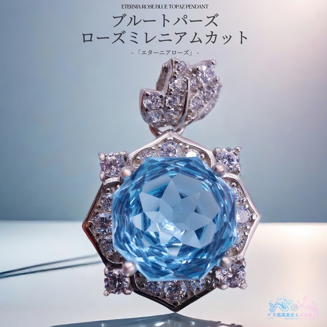 【エターニアローズ】スカイブルートパーズ 薔薇/ローズミレニアムカット 天然石 S925 シルバー ペンダント ネックレス