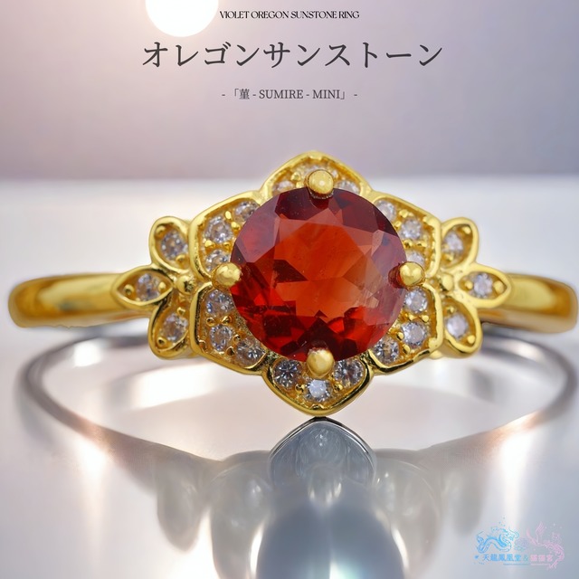 ストーン:天然オレゴンサンストーン カット:ラウンドファセットカット ストーンのサイズ:5*5mm(約0.4ct) 素材:純正SV925(S925刻印入り/K18イエローゴールドコーティング) サイズ:フリー(デフォルト12号) ■リングのデザイン こちらは当店が構想から設計まで手がけた、完全オリジナルのリング枠。 枠の原案を手がけたデザイナーと製造工場が緻密に連携し、小さな花のようなフォルムに“咲かせたい想い”を込めた、特別な一品です。 5mmのラウンドサイズを基準に設計されたこのリング枠は、小ぶりでありながら洗練された存在感を放ちます。特に注目していただきたいのは、「花弁と葉っぱ」のバランス。一般的な6mm用の市場流通枠では、センターストーンがやや大きすぎて葉のモチーフが埋もれがちになりますが、本作では石と周囲のデザインが引き立て合うよう、細かく調整を加えています。 ■宝石について アメリカ・オレゴン州産の天然オレゴンサンストーンを主石に用いた、繊細で気品あるリングです。 本作に使用しているのは、数あるオレゴンサンストーンの中でも特に発色の優れた赤系カラーのみを厳選した一石。 銅由来のインクルージョンによって生まれるオレゴンサンストーン特有の色合いの中でも、ここまで深みと透明感を併せ持つ赤は産出量が少なく、流通数も限られています。 光を受けると、朱から深紅へと表情を変え、内側から静かに燃えるような輝きを見せるのがこの石の魅力。 派手さではなく、「芯のある美しさ」を感じさせる赤です。 デザインは、当店人気の《菫 -SUMIRE-》シリーズをベースに、石の存在感を引き立てる5mmサイズ仕様。 主石の周囲には高品質ジルコニアを花弁のように配置し、可憐さとクラシカルな雰囲気を両立させました。 石を主役に据えつつ、全体のバランスを崩さない、上品な仕立てとなっています。 ⬛︎K18イエローゴールド 地金の反射光が石の内部に回り込み、赤みが中心に集まるような印象を与えます。 オレンジや淡さに転びやすい個体でも色が安定して見え、赤系オレゴンサンストーンに深みと落ち着きを加えてくれる組み合わせです。 オレゴンサンストーンは、「希望」「前向きな情熱」「自分らしさ」を象徴するといわれる宝石。その中でも赤系は、意志の強さや内なる情熱を静かに宿す色とされています。 可憐さの奥に、確かな芯を感じさせる一本。 量産品では表現しきれない、洗練されたバランスと細部へのこだわり。 指先で静かに花開く、小さな芸術品をぜひお楽しみください。