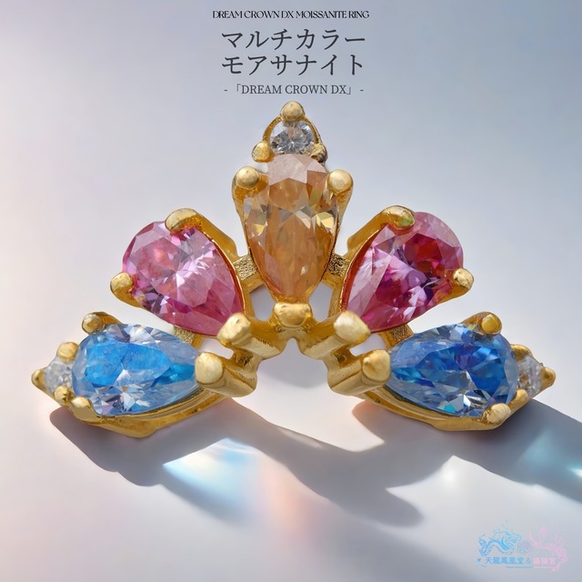 ⬛︎動画はこちら https://youtube.com/shorts/T7wj3oeZUvk?si=2CWVB_HFeN4wjA-q 中石:合成モアサナイト 中石のカラー:ミント/イエロー/ピンク/ブルー/グリーン 中石のカット:ペアシェイプハート&アローカット 中石のサイズ:3*5mm(約0.3ct) クラリティ:VVS 産地:アメリカ リングの素材:SV925(刻印入り/K18イエローゴールドコーティング) メレ石:モアサナイト DREAM CROWN DX – レインボーカラーモアサナイト 本作は、枠の本家製造工場およびデザイナーが元のCADデザインを当店仕様へ改良して仕立てた“限定モデル”。 海外一般販売品とは異なる、当店のみの限定モデルをお楽しみいただけます。 〈虹の光を一つの王冠に集めた、特別仕立て〉 色彩の魔法をそのまま宝石に閉じ込めたような、DREAM CROWN DX の“レインボーカラー”モデル。 虹の流れを意識し、左から右へ ミントブルー → イエロー → ピンク → ブルー → グリーン と、自然界の“光のグラデーション”を思わせる並びに。 ・ミントブルーモアサナイト 透明感の中にほんのり青緑を含む、朝露のような清らかな輝き。 ・イエローモアサナイト 太陽のように明るく、幸福を呼ぶライトイエロー。 ・ピンクモアサナイト(センター) コレクションの主役。可憐でありながら強い煌めきを放つ華の色。 ・ブルーモアサナイト 晴れ渡る空のように澄み切ったブルー。きらめきの中に爽やかさを。 ・グリーンモアサナイト 深みのあるエメラルド調のグリーン。全体を落ち着かせる調和の色。 ひとつひとつの色が個性を持ちながらも、隣り合う色と自然に馴染み、全体として“虹を纏う王冠”を作り上げています。 ゴールドの地金が柔らかな温かみを添え、明るい色彩をより生き生きと引き立てる特別な仕立て。 光を受けるたび七色の輝きがふわりと浮かび、まるで“虹のかけら”をそのまま閉じ込めたような仕上がりです。 レインボーの幸福と煌めきをその手に。 気分を明るく彩る、色彩の魔法のリング。 ※サイズ調整に関するご注意※ 本商品はフリーサイズ仕様のため、ご自身でサイズを調整いただけますが、以下の点にご留意ください。 調整はリングの重なっている部分(アーム同士が二重になっている部分)のみで行ってください。 上部(石やデザイン部分)を無理に広げたり縮めたりすると、石割れや爪の緩みにつながる恐れがあります。 調整の際は、内側を支えながら外側をそっと押す/引くように、少しずつ行ってください。 一度に大きな力を加えると、変形や破損の原因となります。 特に10号以下に縮める場合、デザイン上サイドのジルコニアが外れやすくなりますのでご注意ください。 素材であるS925は柔らかい性質のため、強い力や繰り返しの調整は金属疲労や石外れの原因となります。必要以上の調整は避けてください。 メッキ加工の商品は、ご使用状況により色味の変化が起こる場合がございます。水や摩擦を避け、優しくお取り扱いいただけますと長く美しさを保てます。