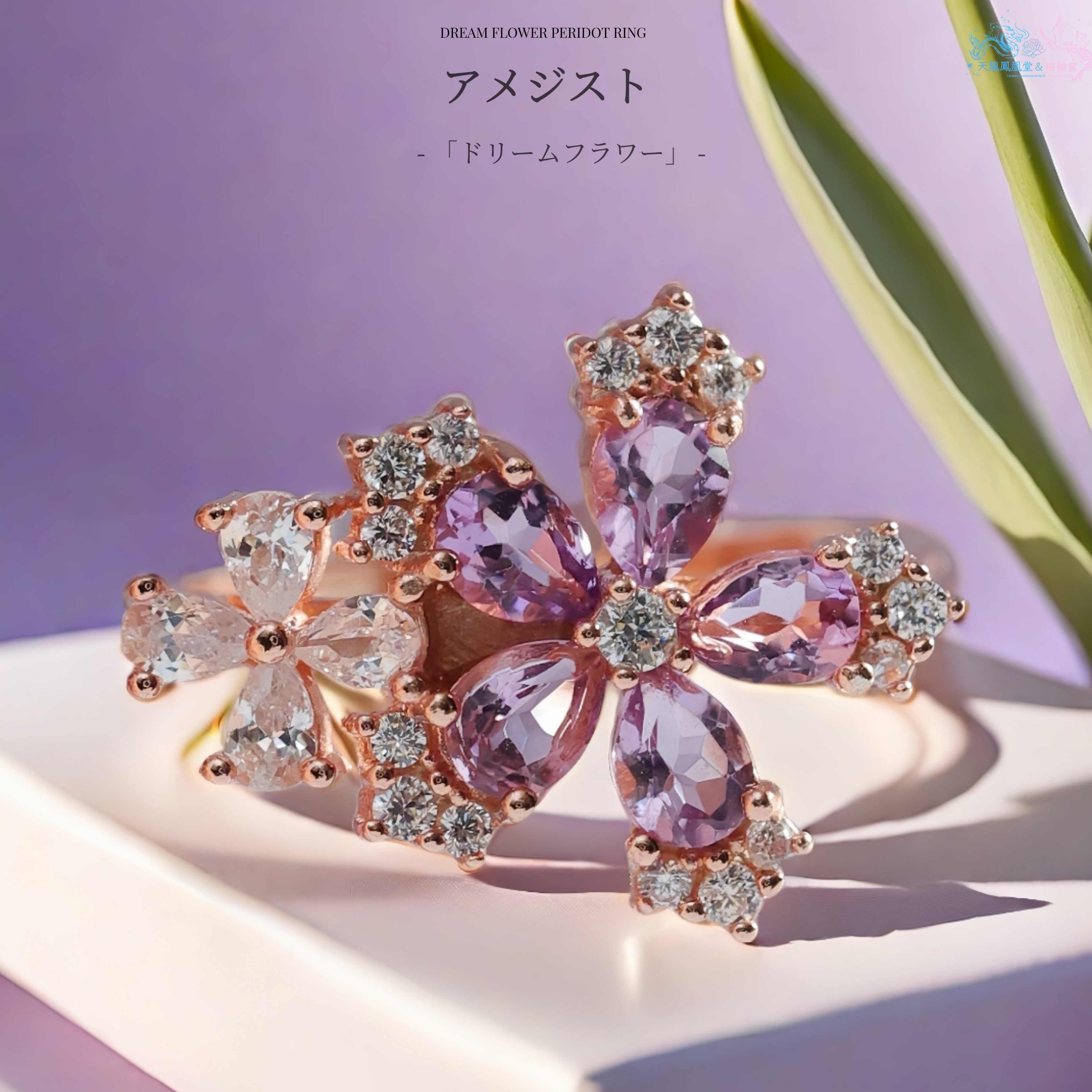 【ドリームフラワー】アメジスト 花 シルバー リング 天然石