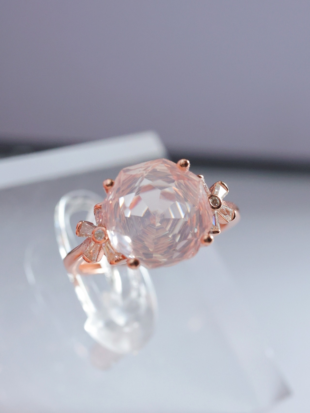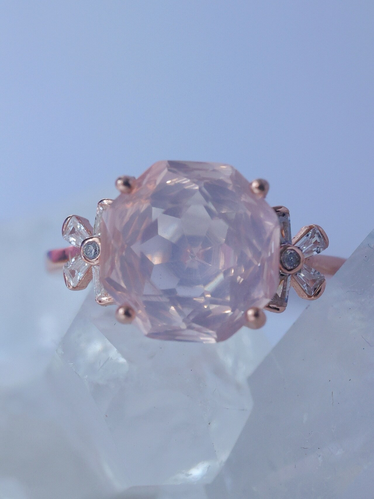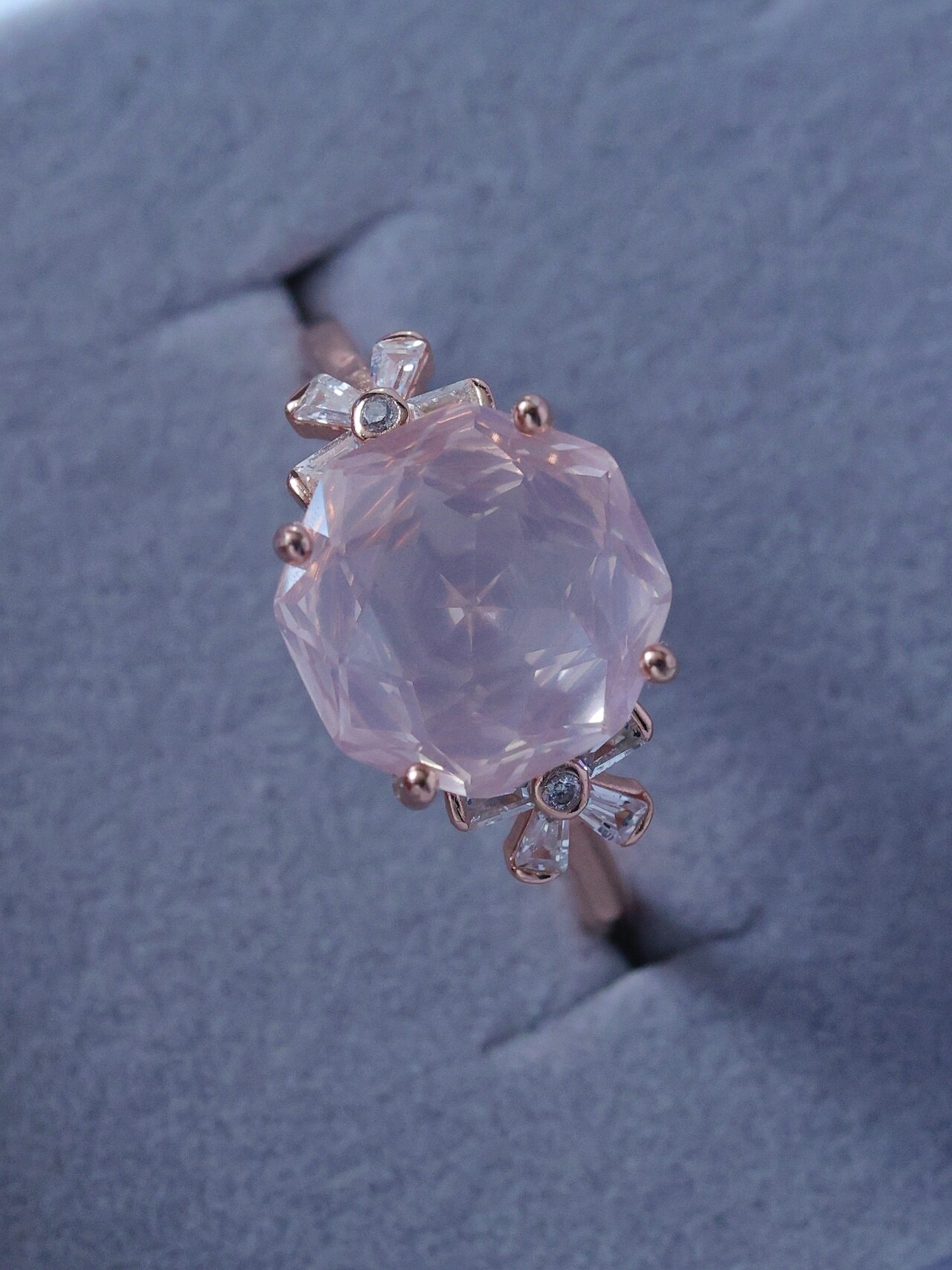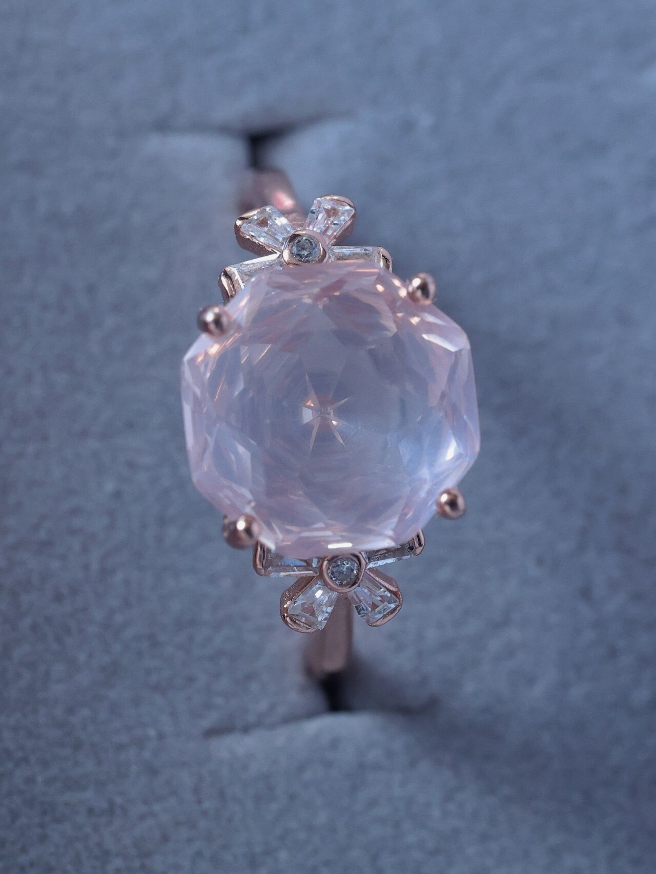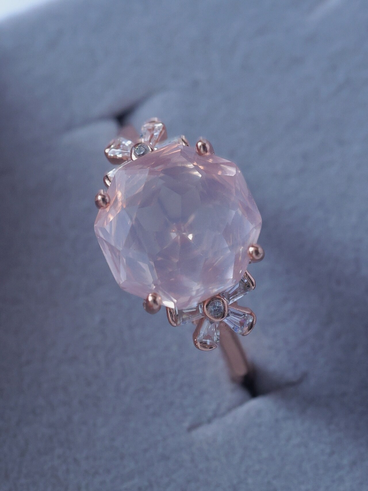 柔らかな桜色が魅力のローズクォーツを主役に仕立てたリングです。