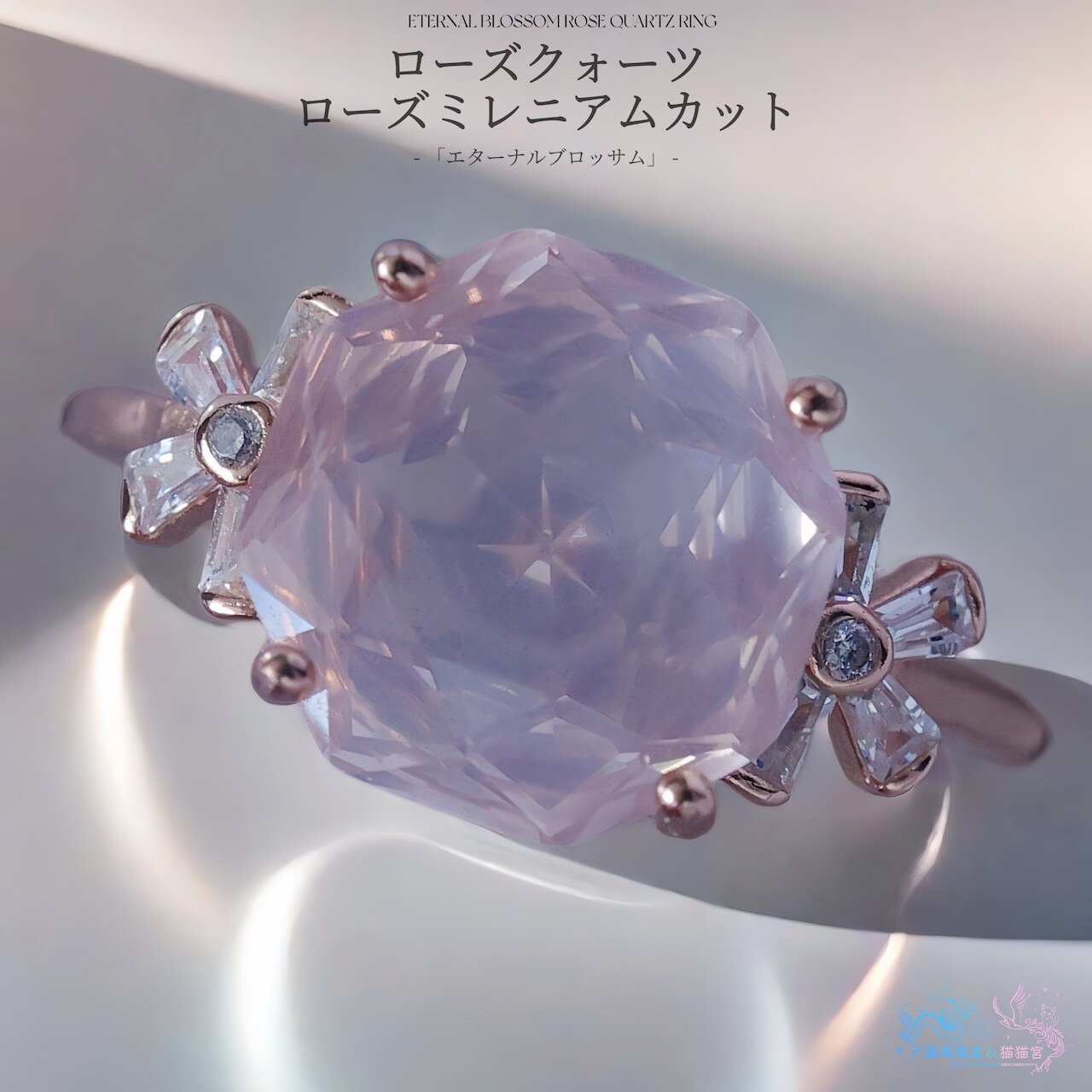 【エターナルブロッサム】ローズクォーツ ローズミレニアムカット 薔薇 天然石 シルバー 18KGP PG リング