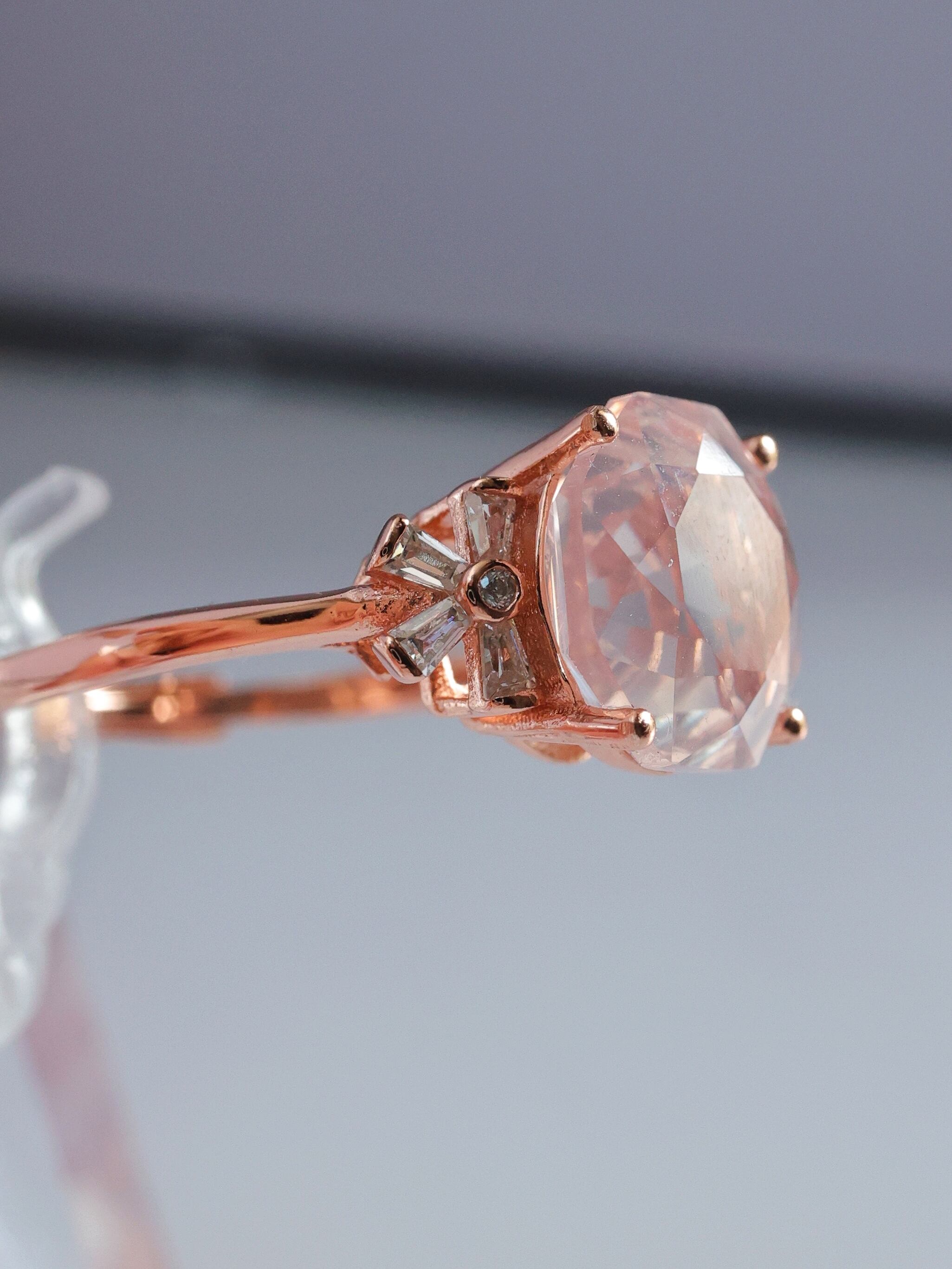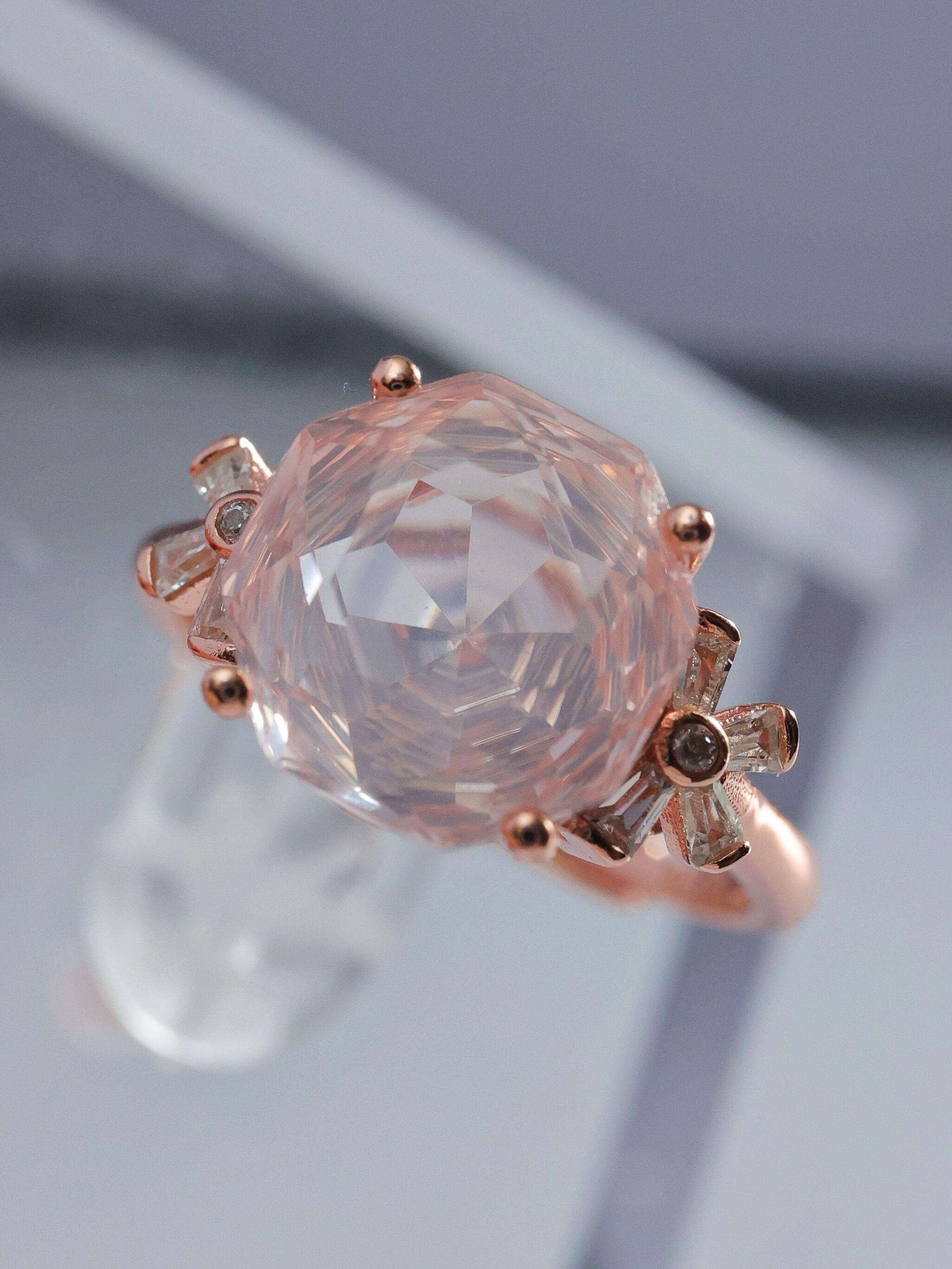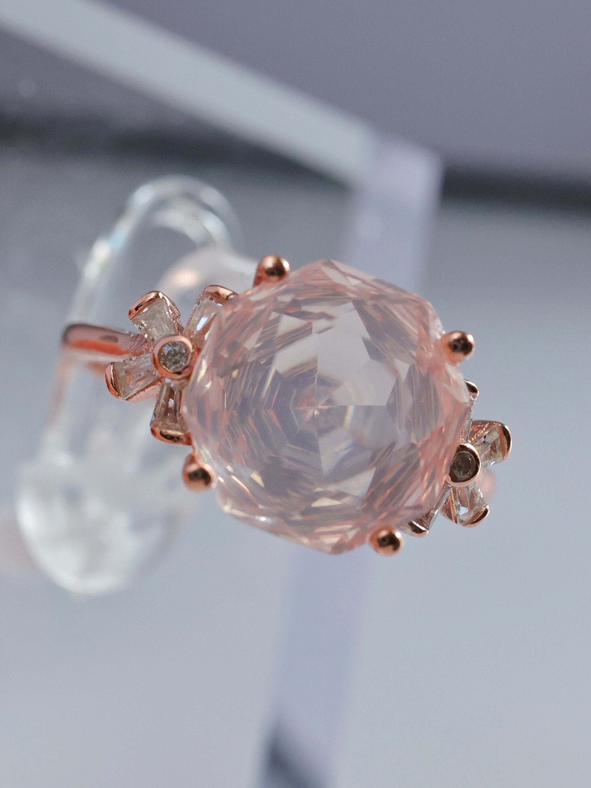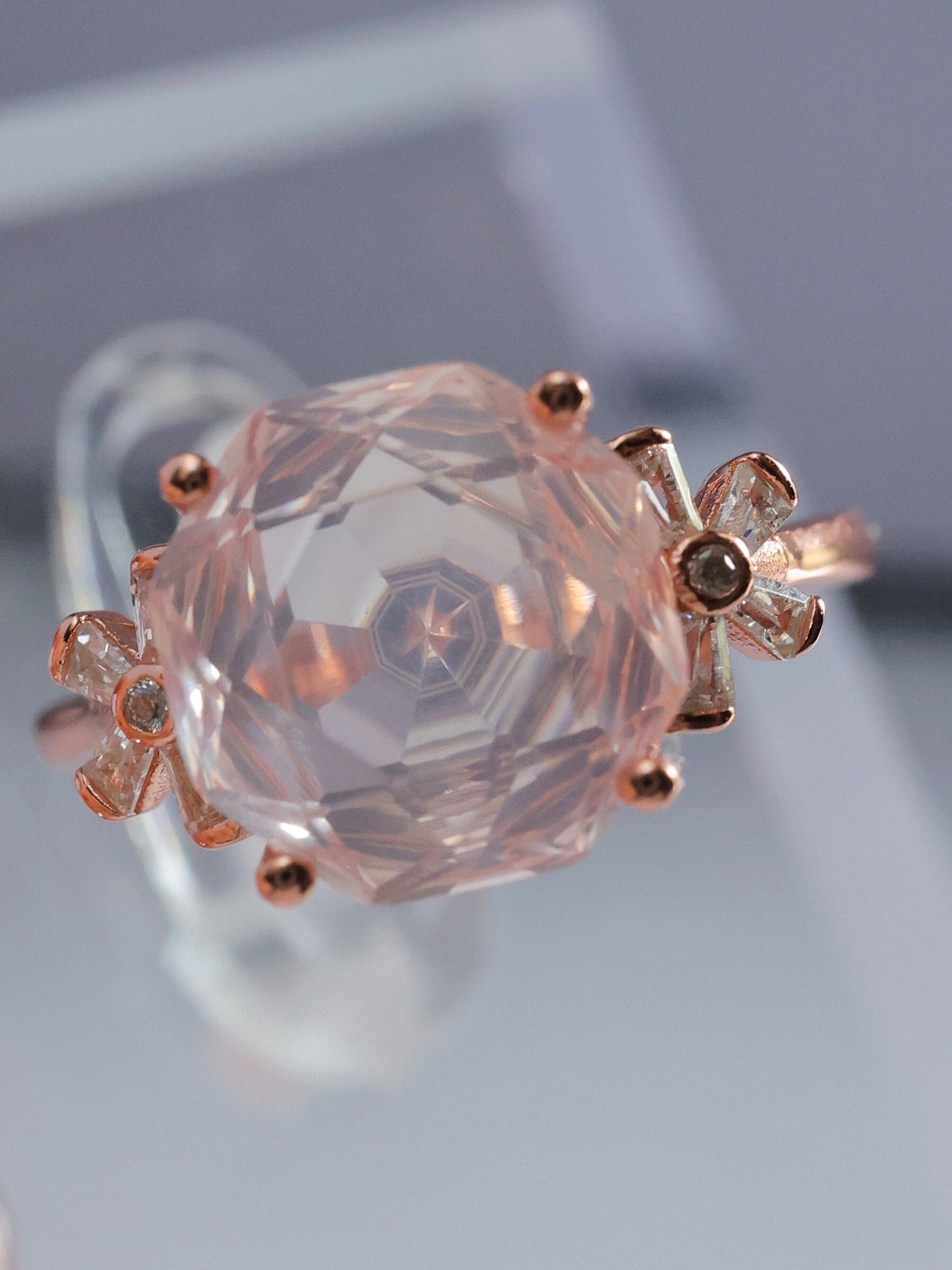 透明感に満ちた大粒10mmのローズクォーツに施されたのは、特別なカット技法である“ローズミレニアムカット”。