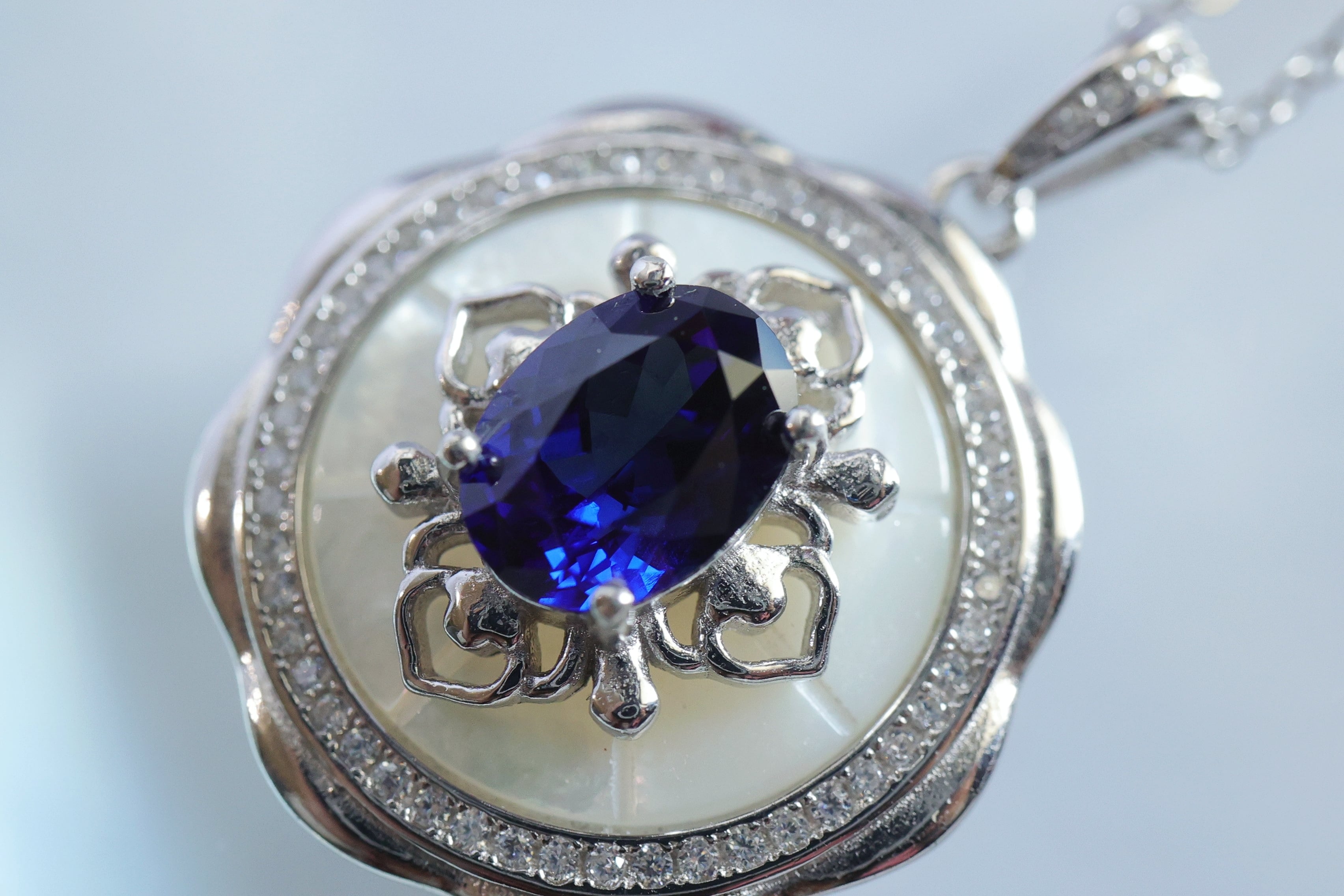 【ヴィクトリアン・グレース】認定ラボグロウン ロイヤルブルー サファイア ペンダント シルバー