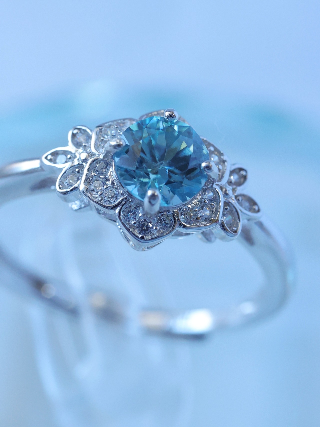 【当店オリジナル】【ブルームラディアンス・スミレ・5mm】ブルージルコン 花 リング シルバー 天然石 鑑別済