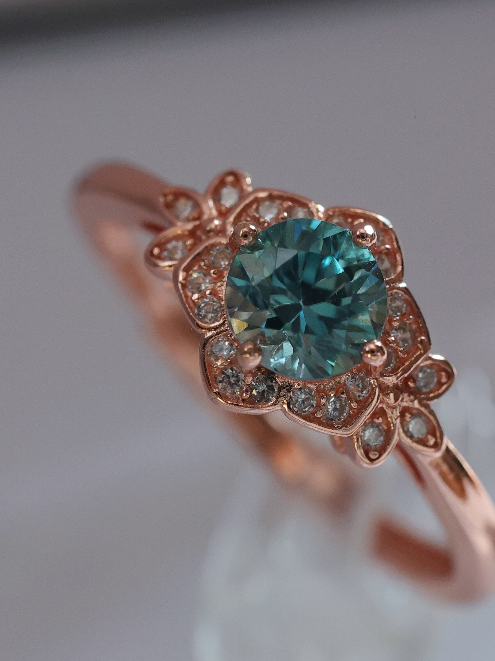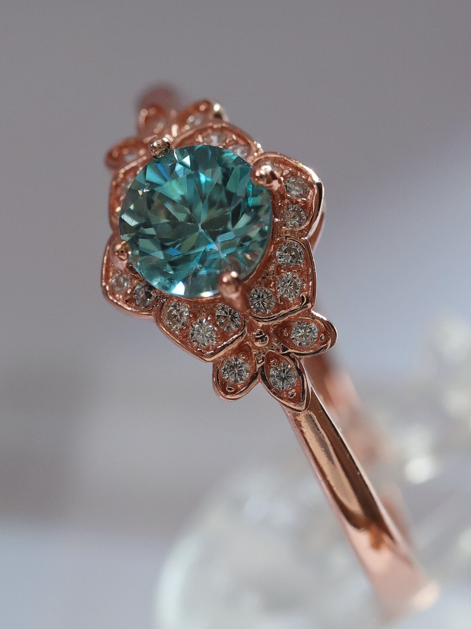 【当店オリジナル】【ブルームラディアンス・スミレ・5mm】ブルージルコン 花 リング シルバー 天然石 鑑別済