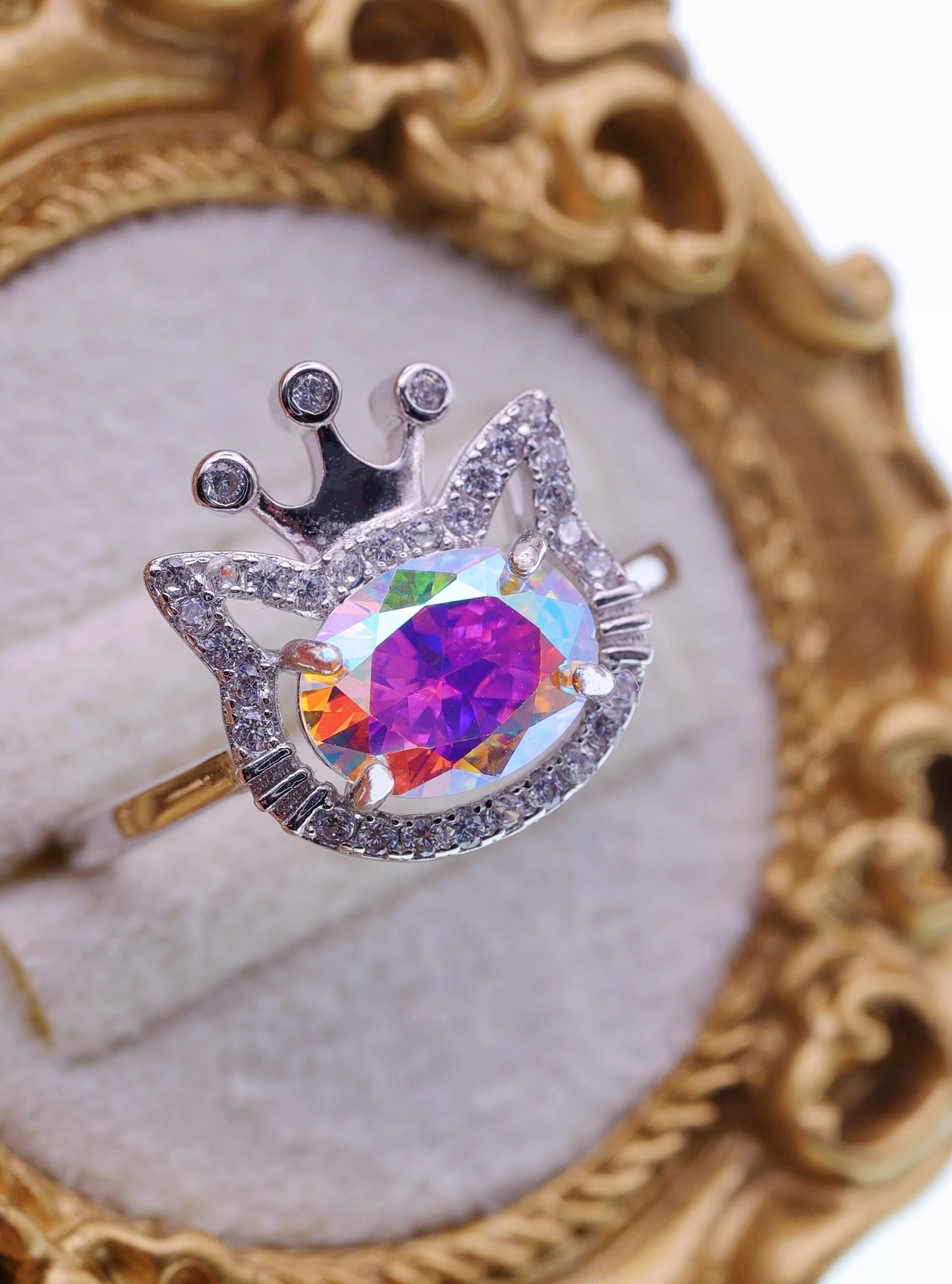 王冠・耳・ひげをかたどった地金部分には、上質なキュービックジルコニアをセッティングし、繊細な煌めきでリング全体を華やかに引き立てています。