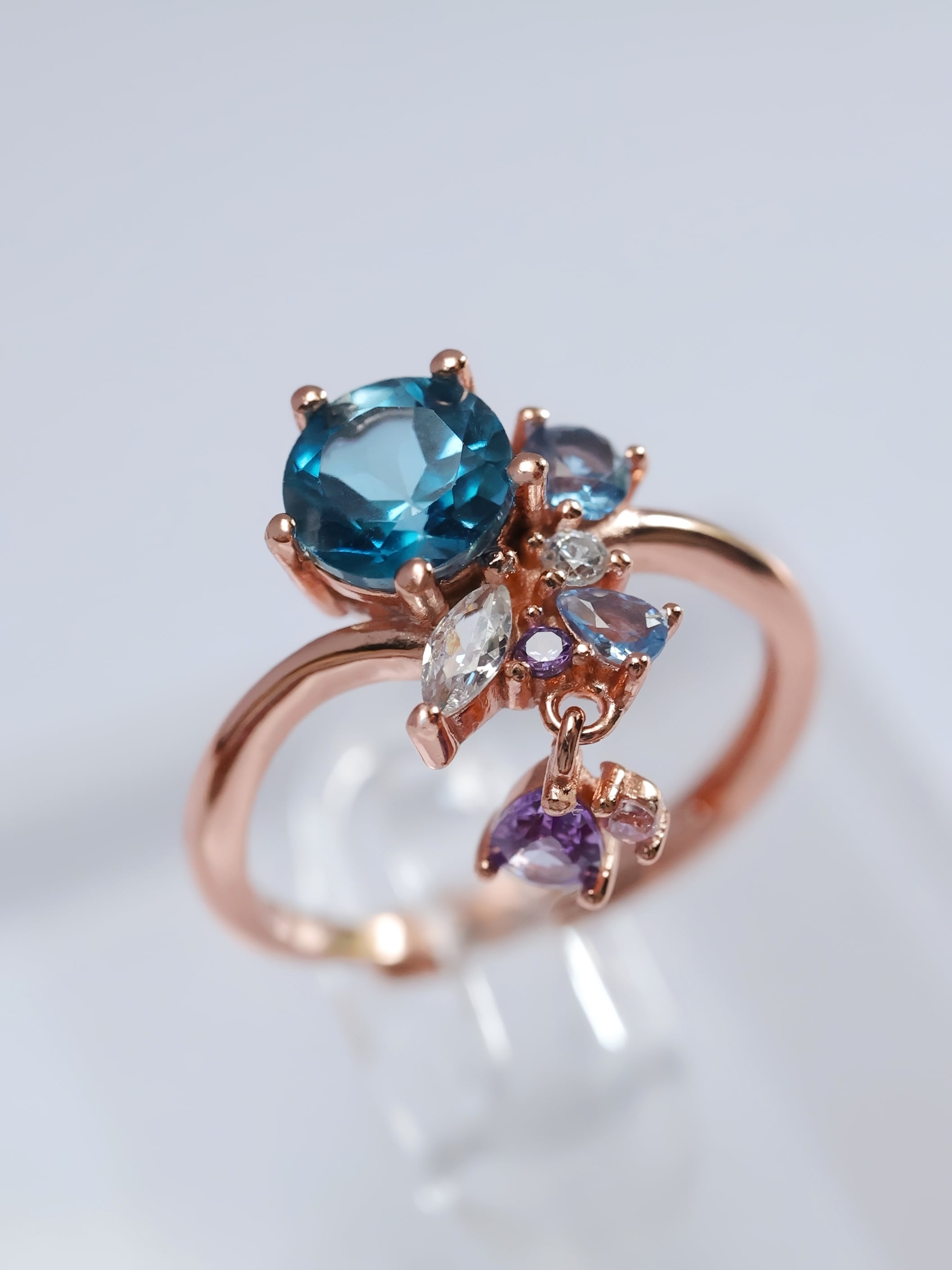中央には、濃密な青が印象的なロンドンブルートパーズを使用。