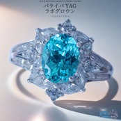 中央には、チョクラルスキー結晶引き上げ法(Czochralski法)で育成された高品質なラボグロウン・パライバYAGをセット。