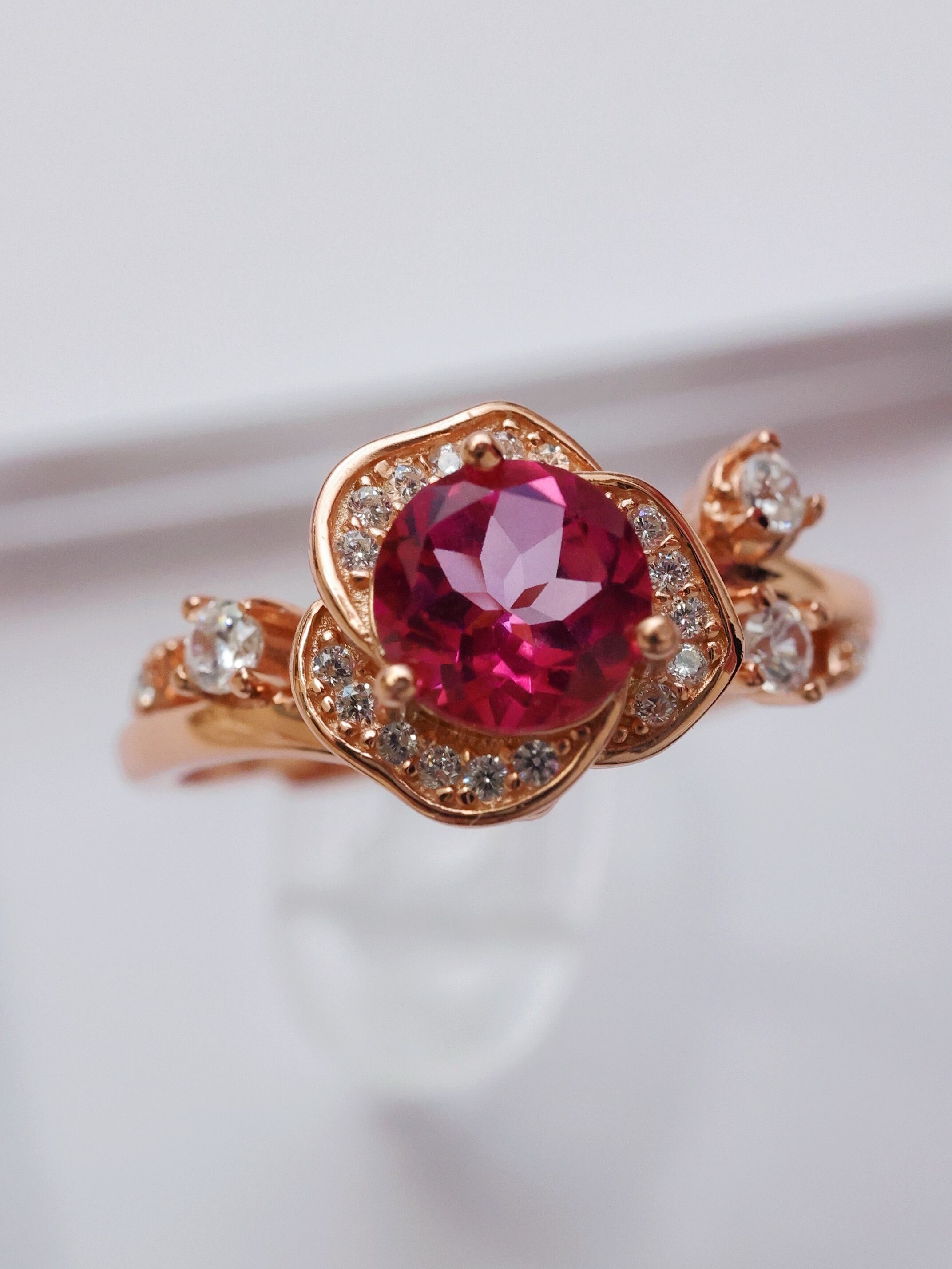 【エターナルローズ】ピンクトパーズ 天然石 シルバー S925 18KGP リング