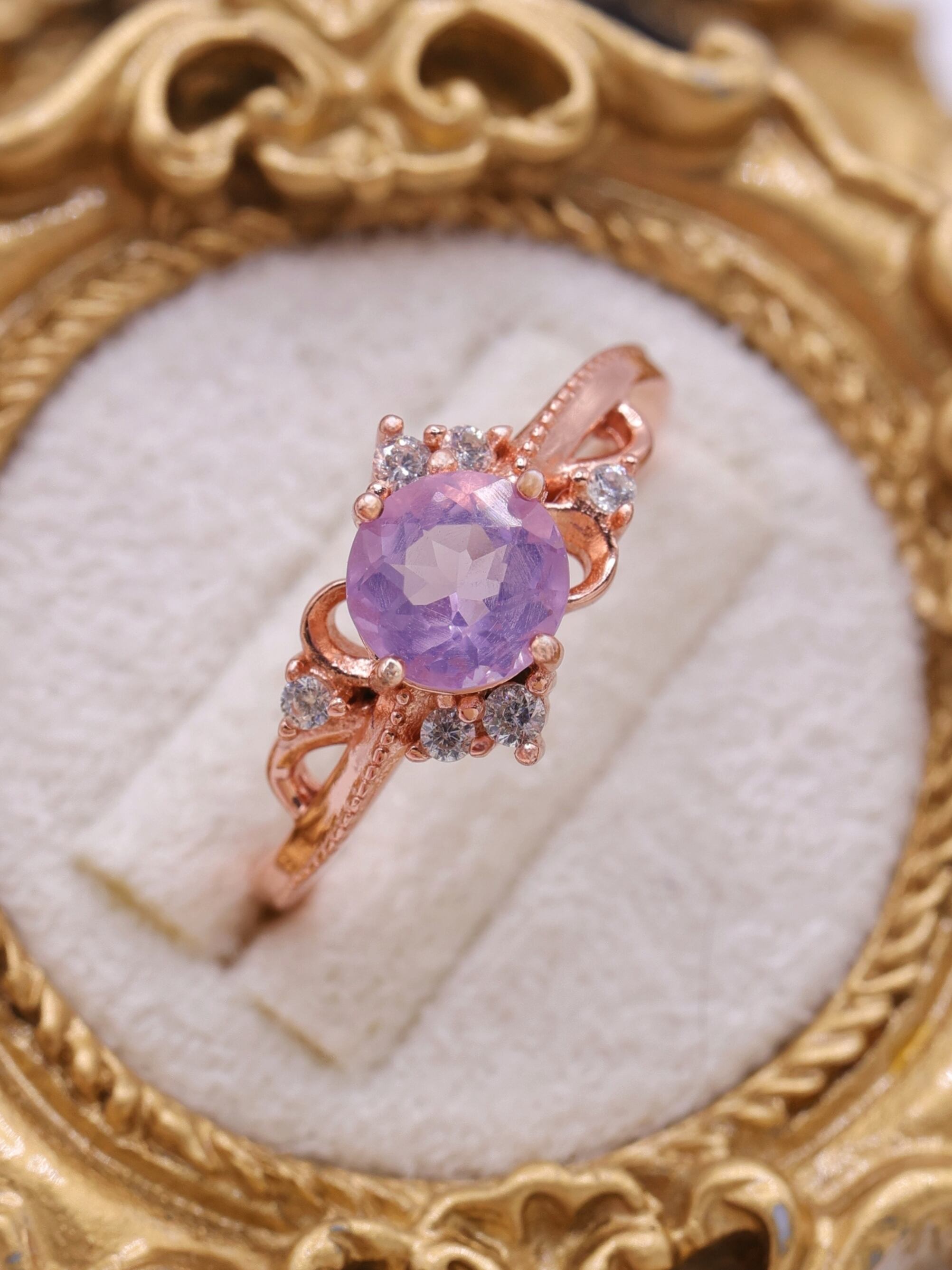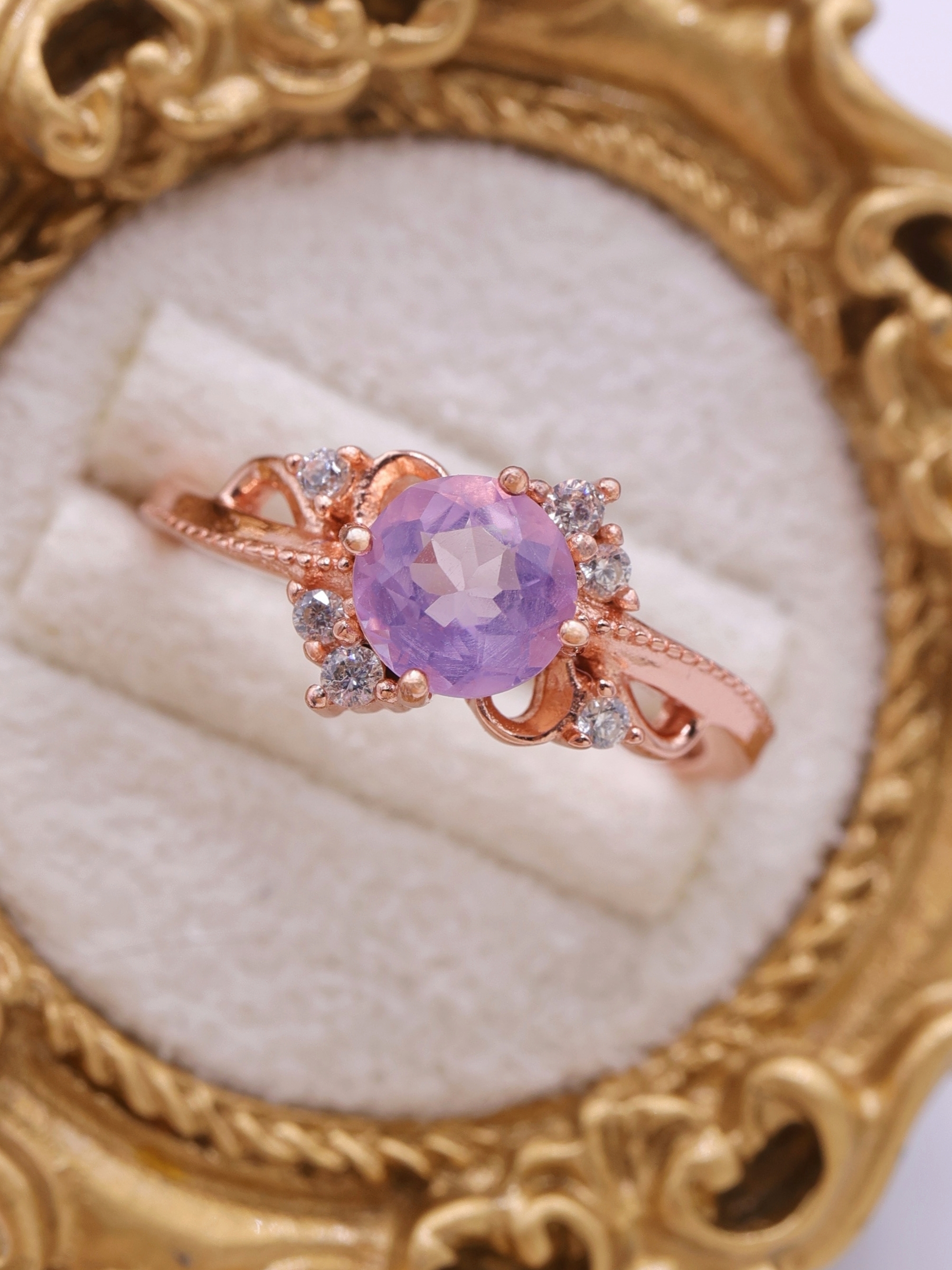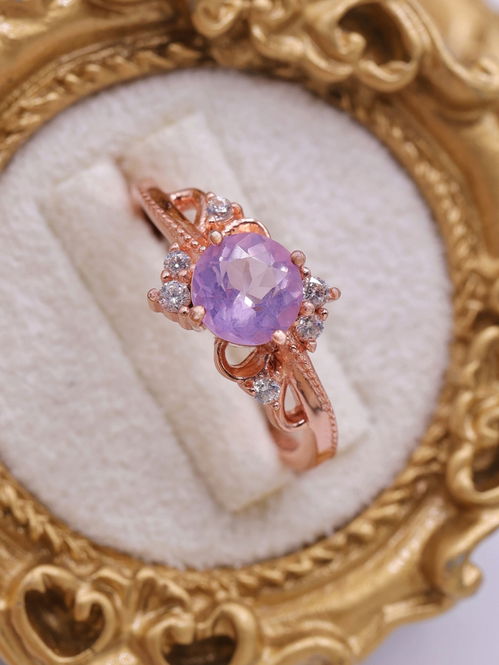 もともとはアメジストとして生まれたルースの中でも、選ばれた一部の石のみが加熱加工して淡いラベンダーカラーへと変化します。