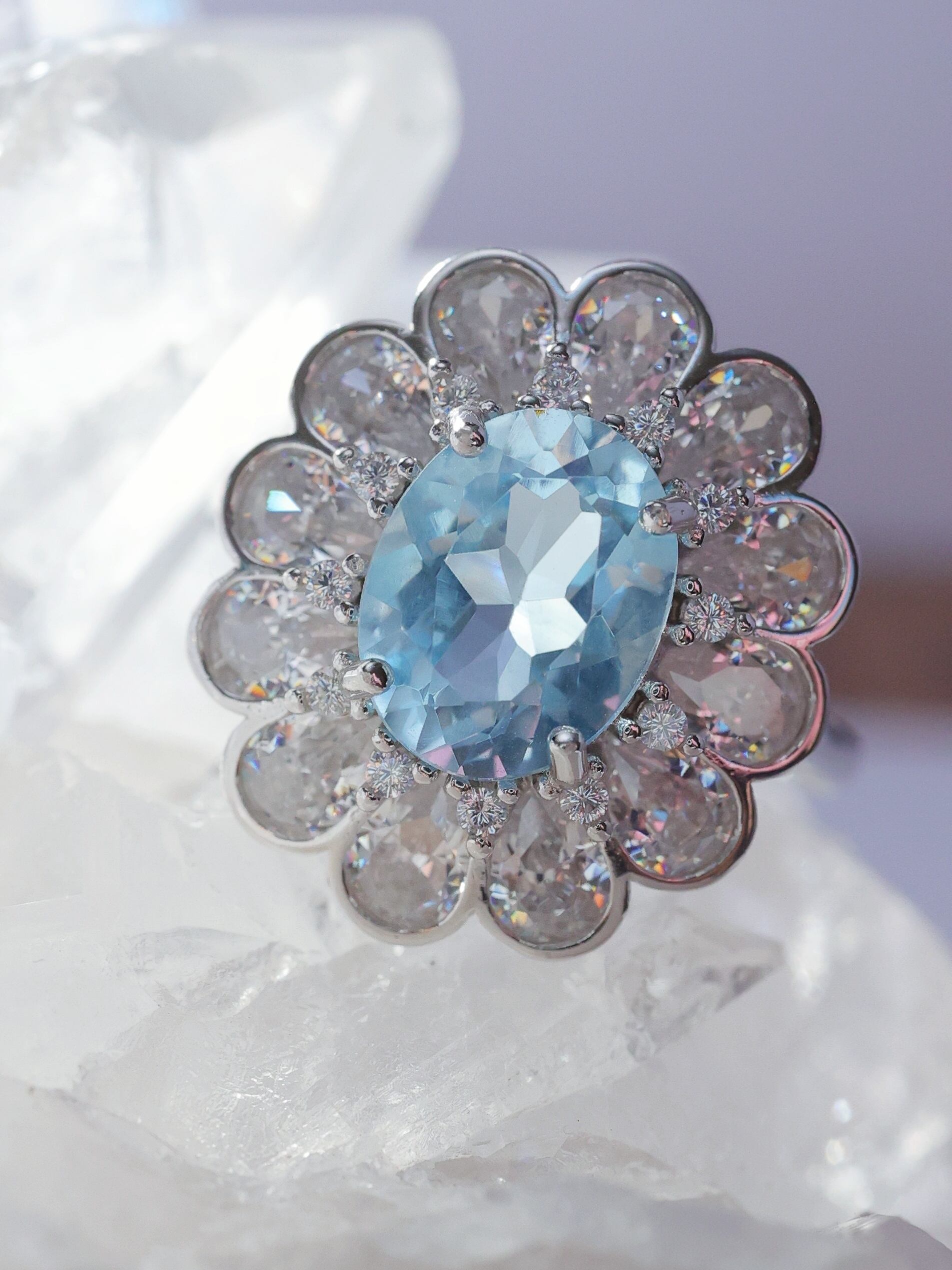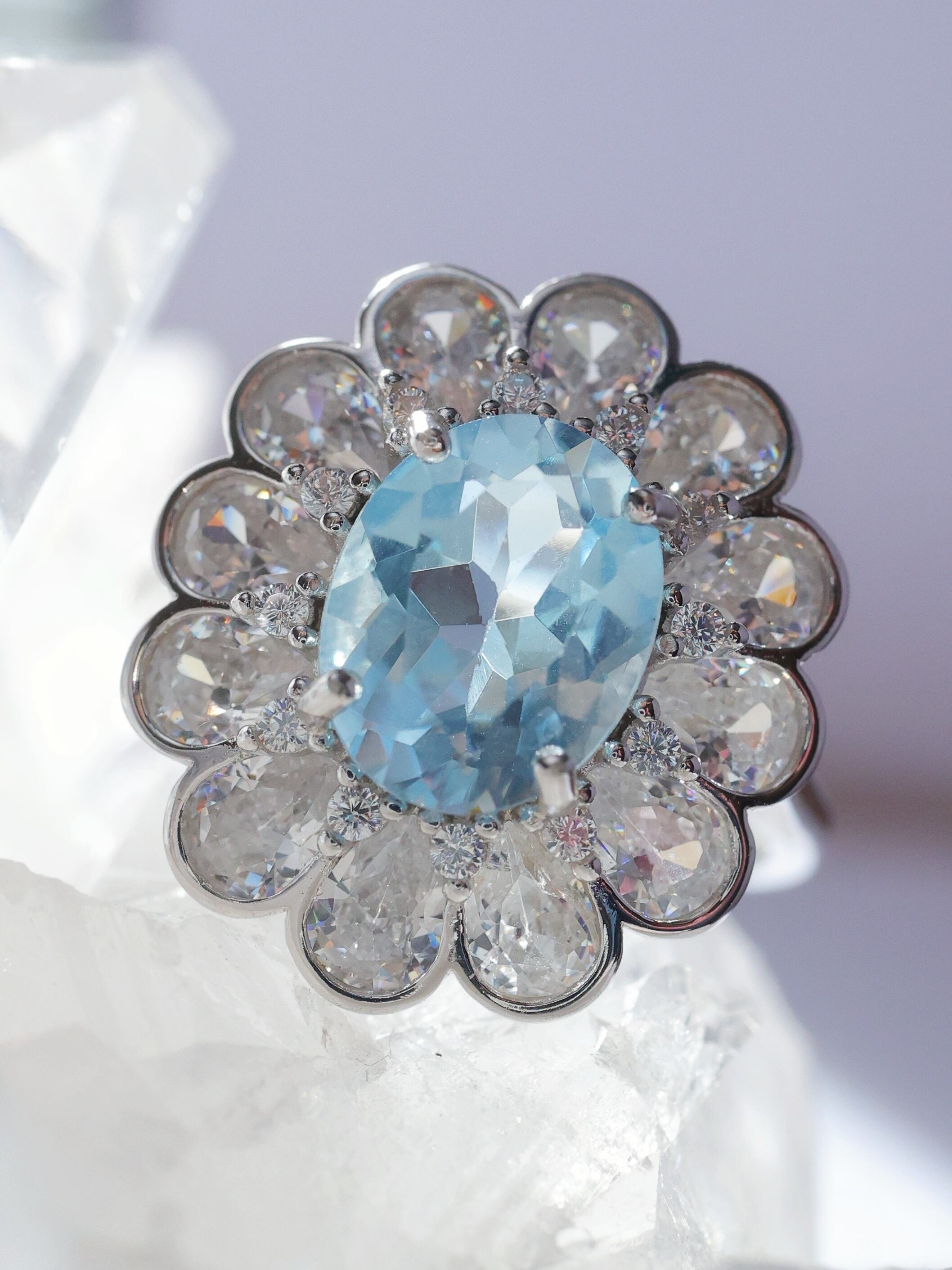 【ノーブルダリア】スカイブルートパーズ 天然石 S925 シルバー リング