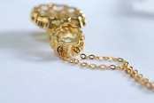 ゴールドカラーの枠がペリドットの瑞々しい緑を引き立て、春の息吹のような優しさと高貴さを感じさせる一品に仕上がっています。