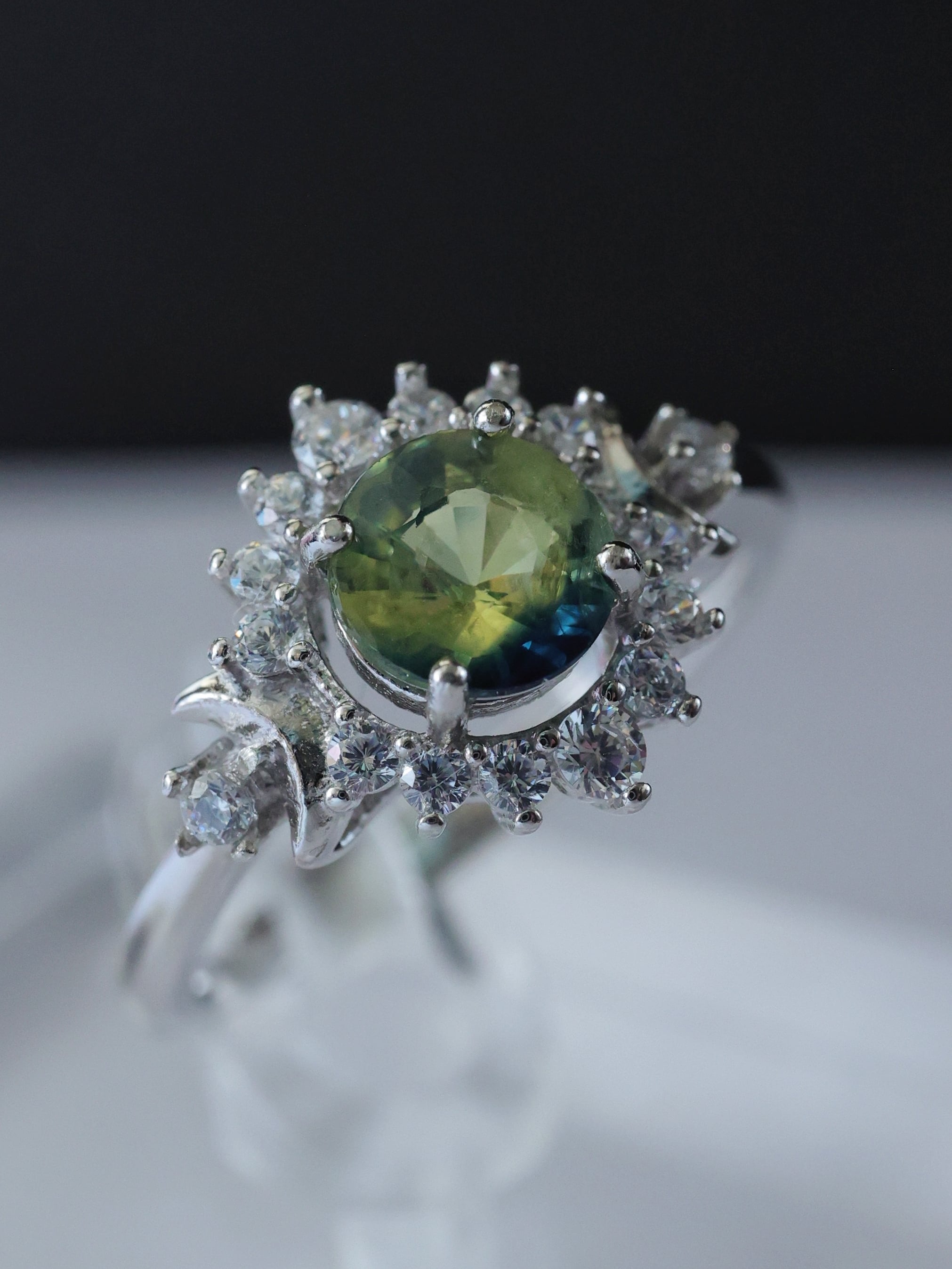 【当店オリジナル】【印象派の宝石 モネ・睡蓮】ソ付 バイカラーサファイア S925 シルバー リング 天然石