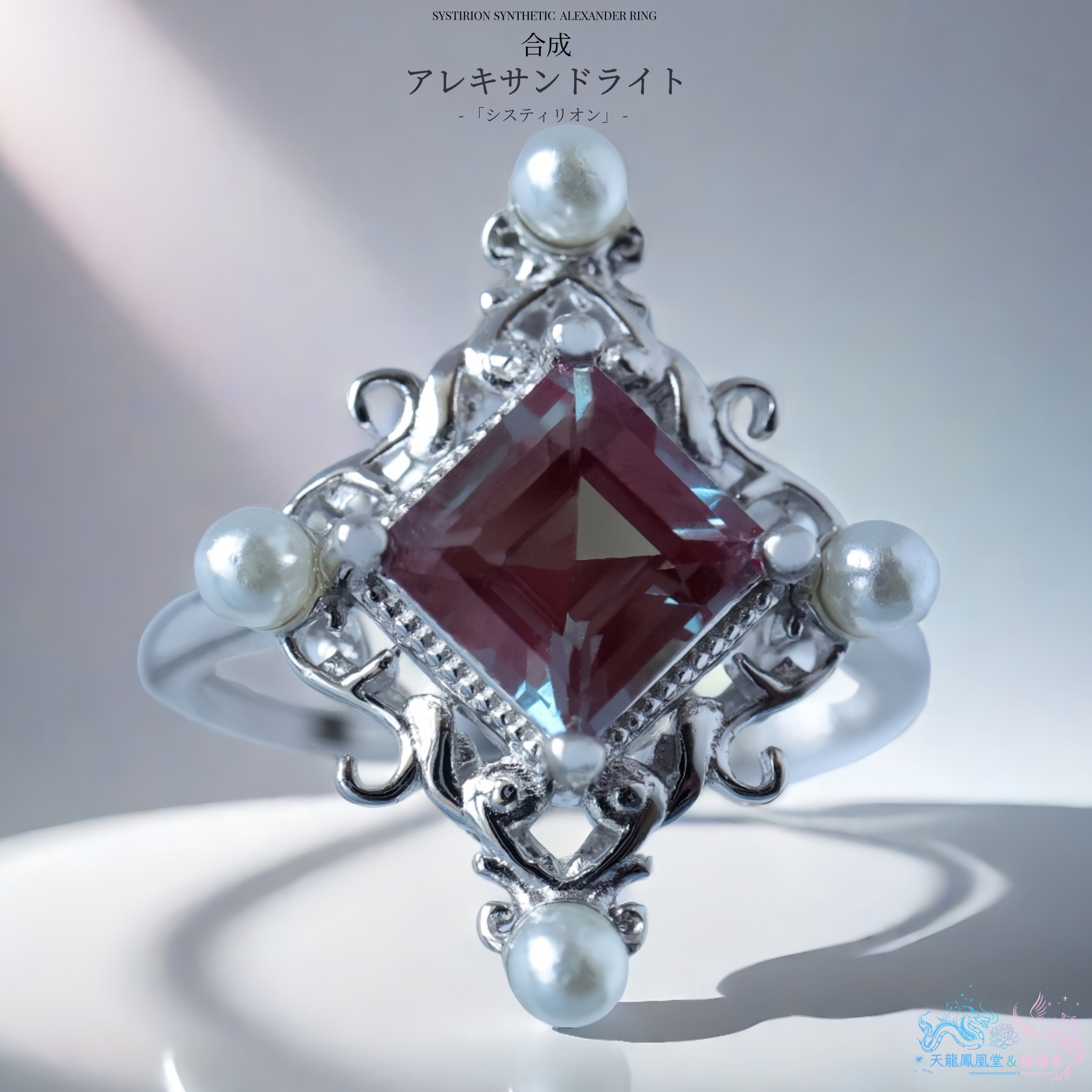 【システィリオン】合成アレキサンドライト アッシャーカット シルバー リング 2025/07/22再入荷