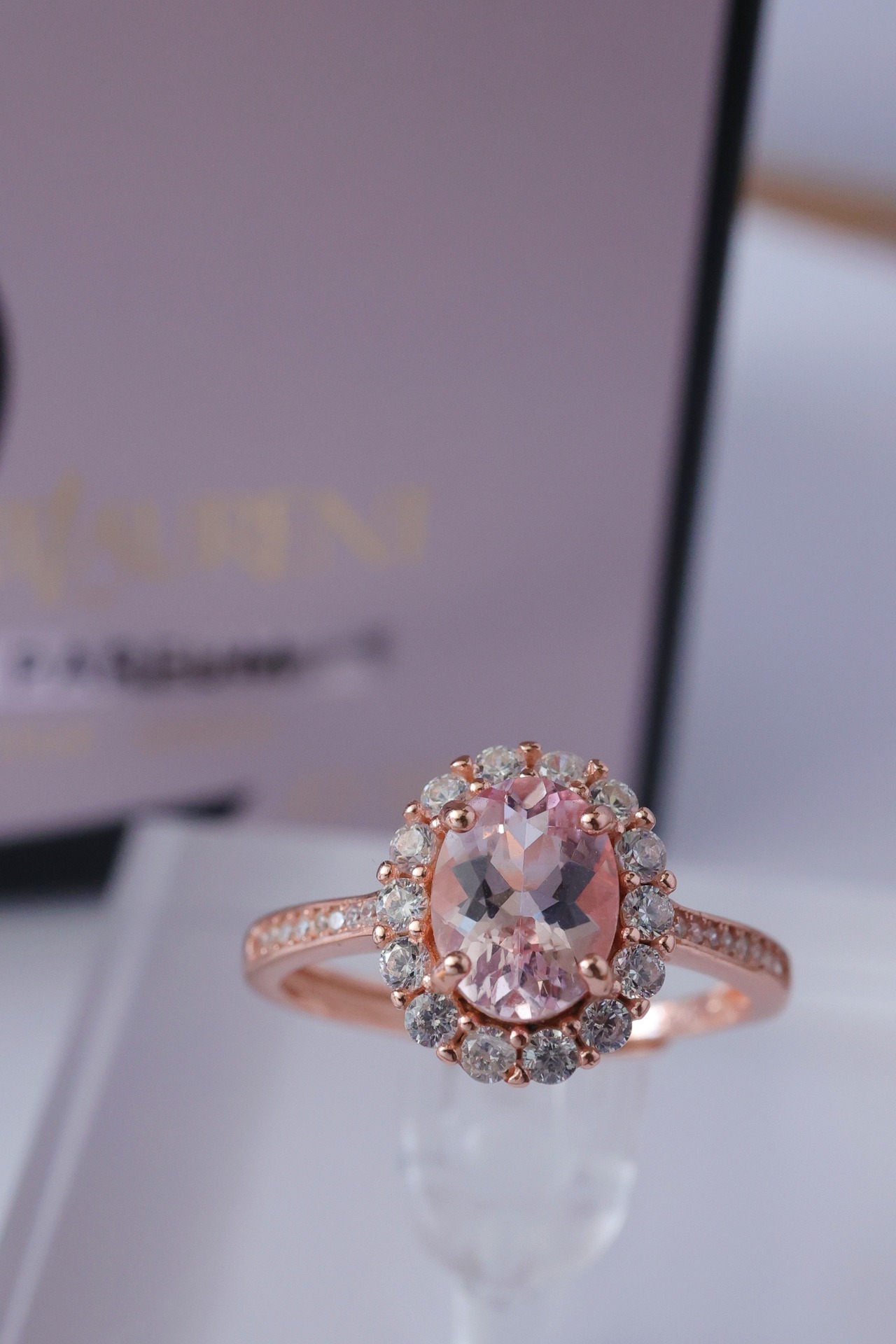 色味は、優美な桜ピンク。甘さの中にも気品を感じさせる絶妙なバランスで、モルガナイト本来の美しさを存分に引き立てています。