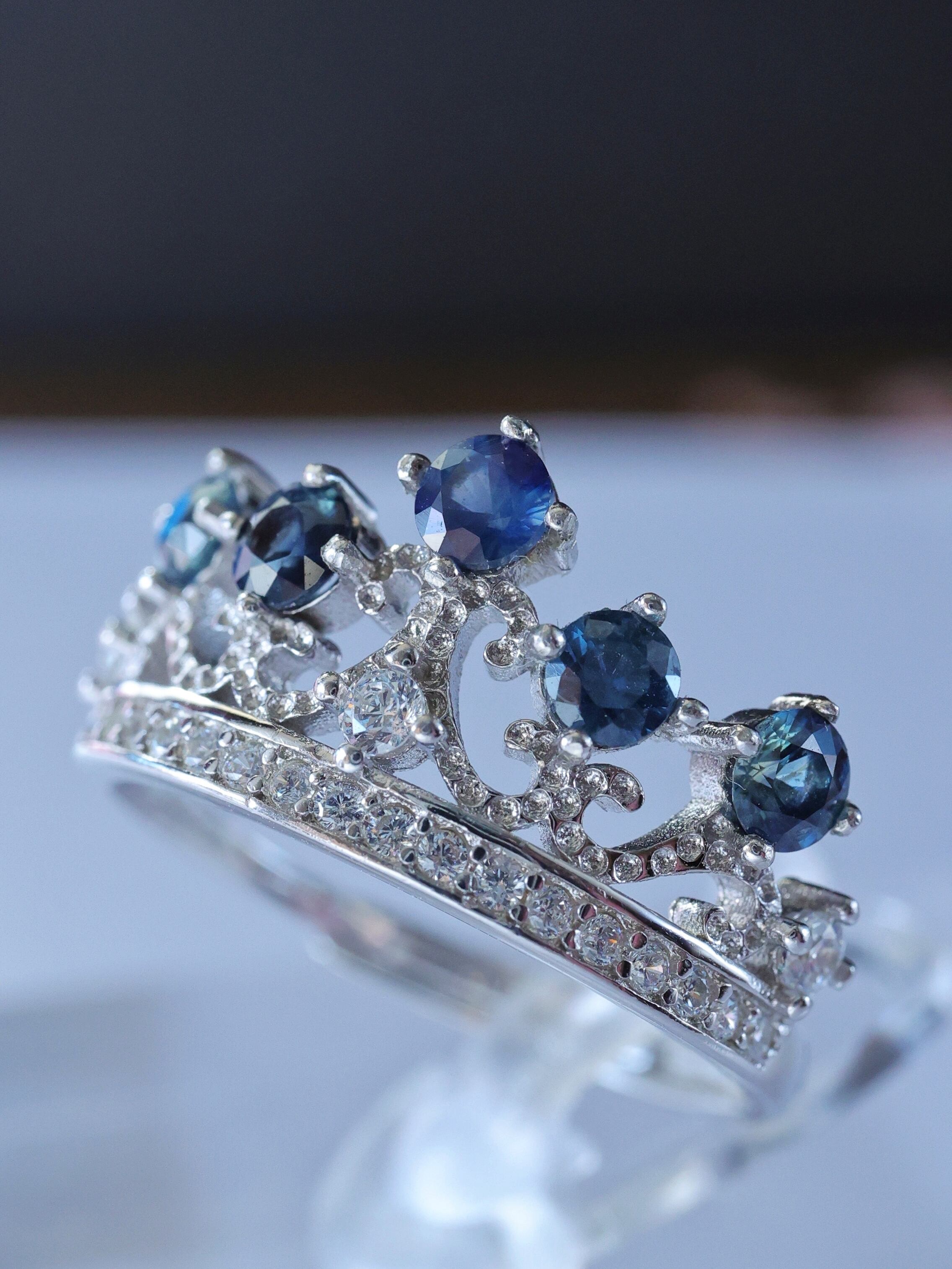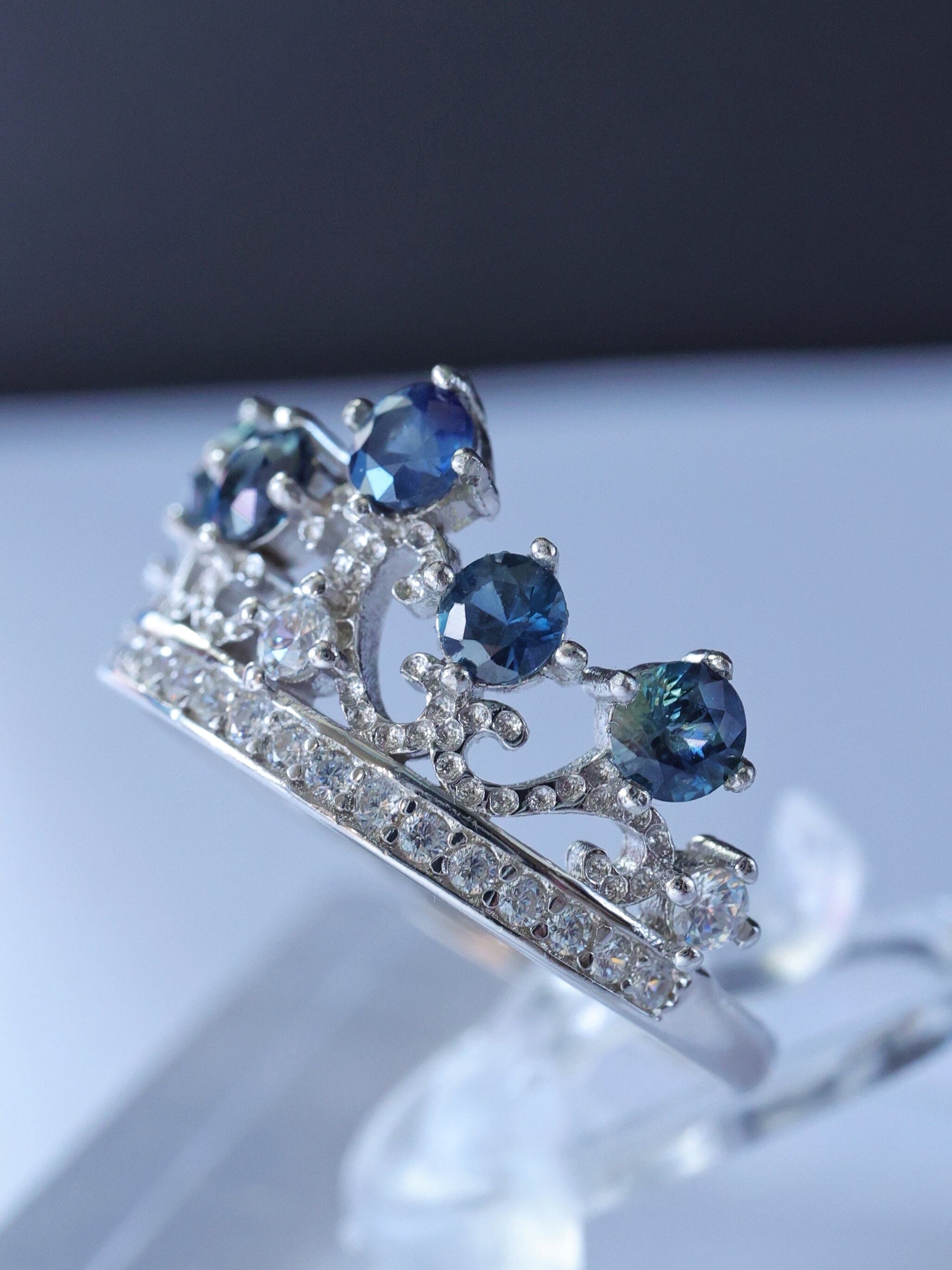 【ノクターンクラウン】バイカラー サファイア ① ティアラ リング シルバー 天然石