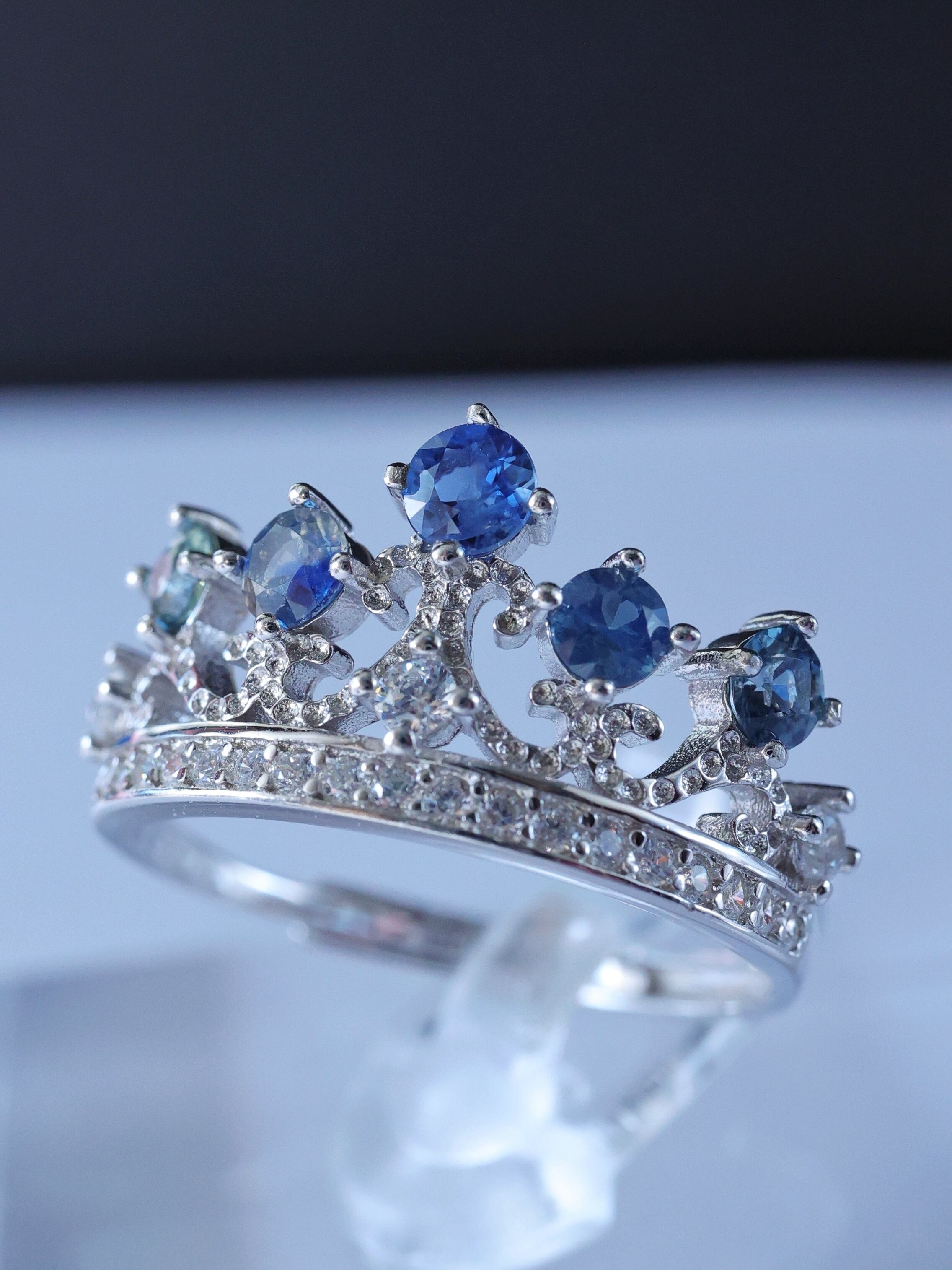 【ノクターンクラウン】バイカラー サファイア ② ティアラ リング シルバー 天然石