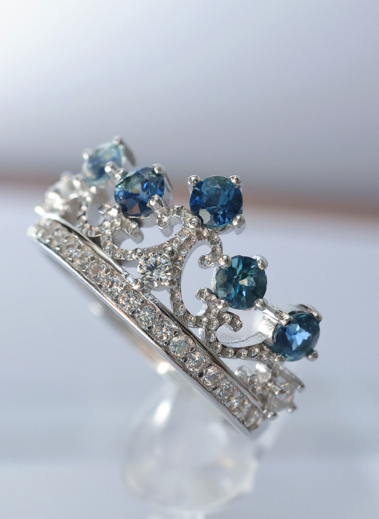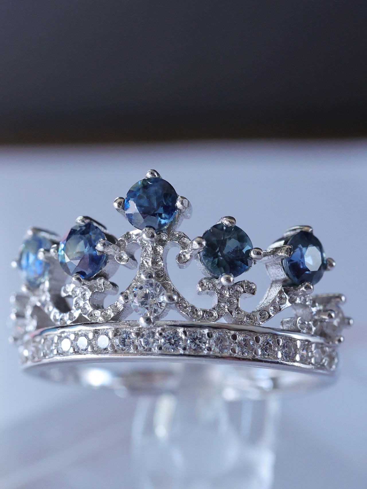 【ノクターンクラウン】バイカラー サファイア ⑤ ティアラ リング シルバー 天然石