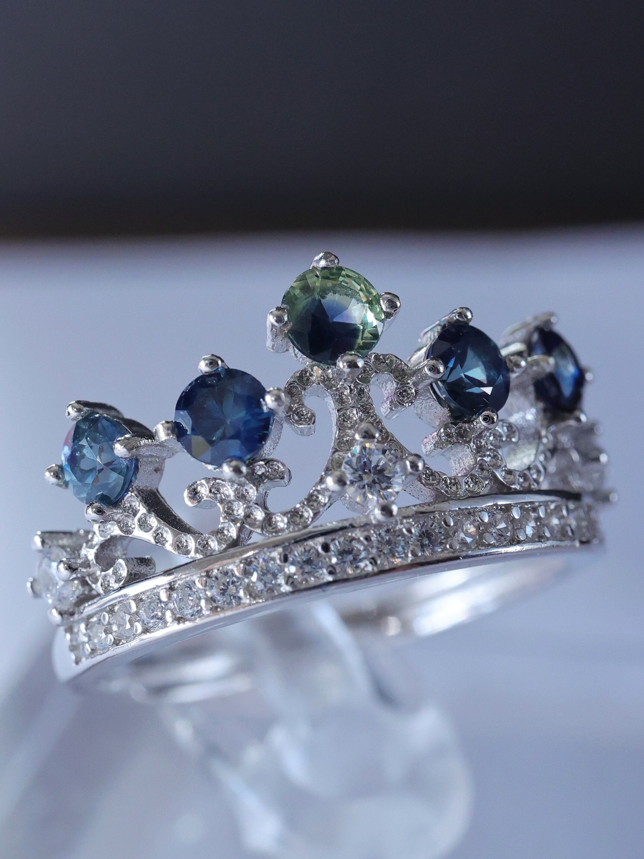 【ノクターンクラウン】バイカラー サファイア ⑥ ティアラ リング シルバー 天然石