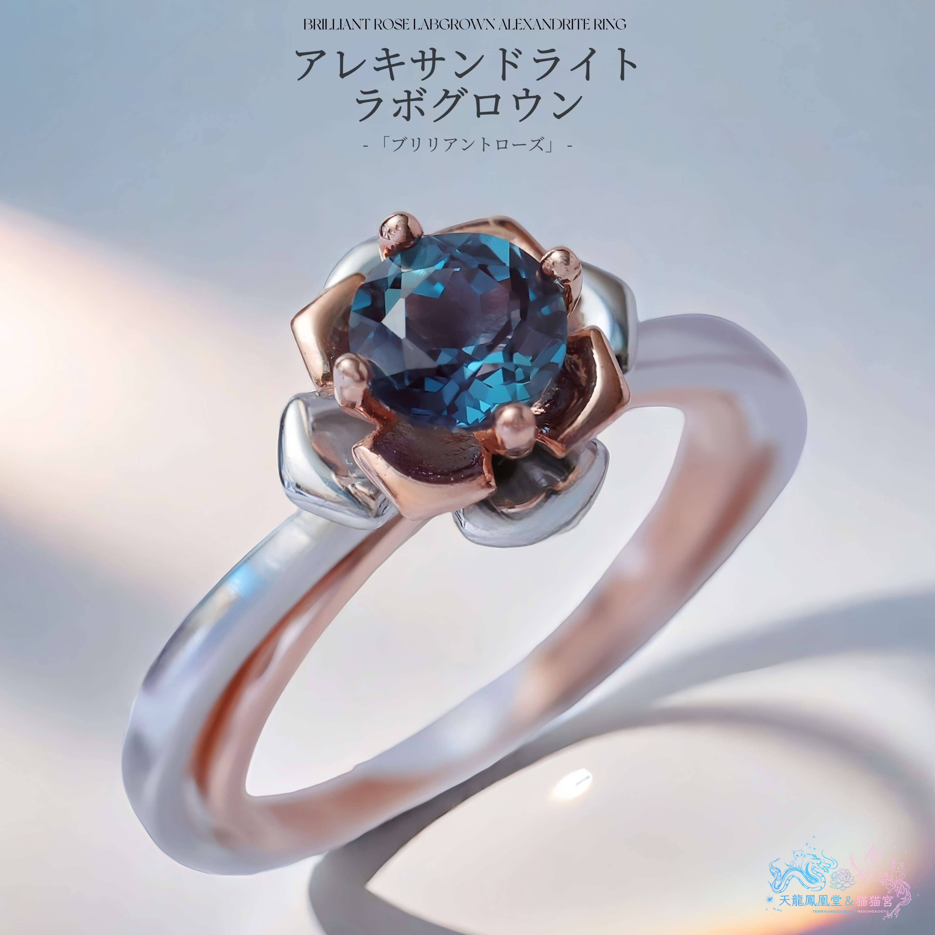 【当店オリジナル】【ブリリアントローズ】アレキサンドライト ラボグロウン S925 シルバー 薔薇 リング