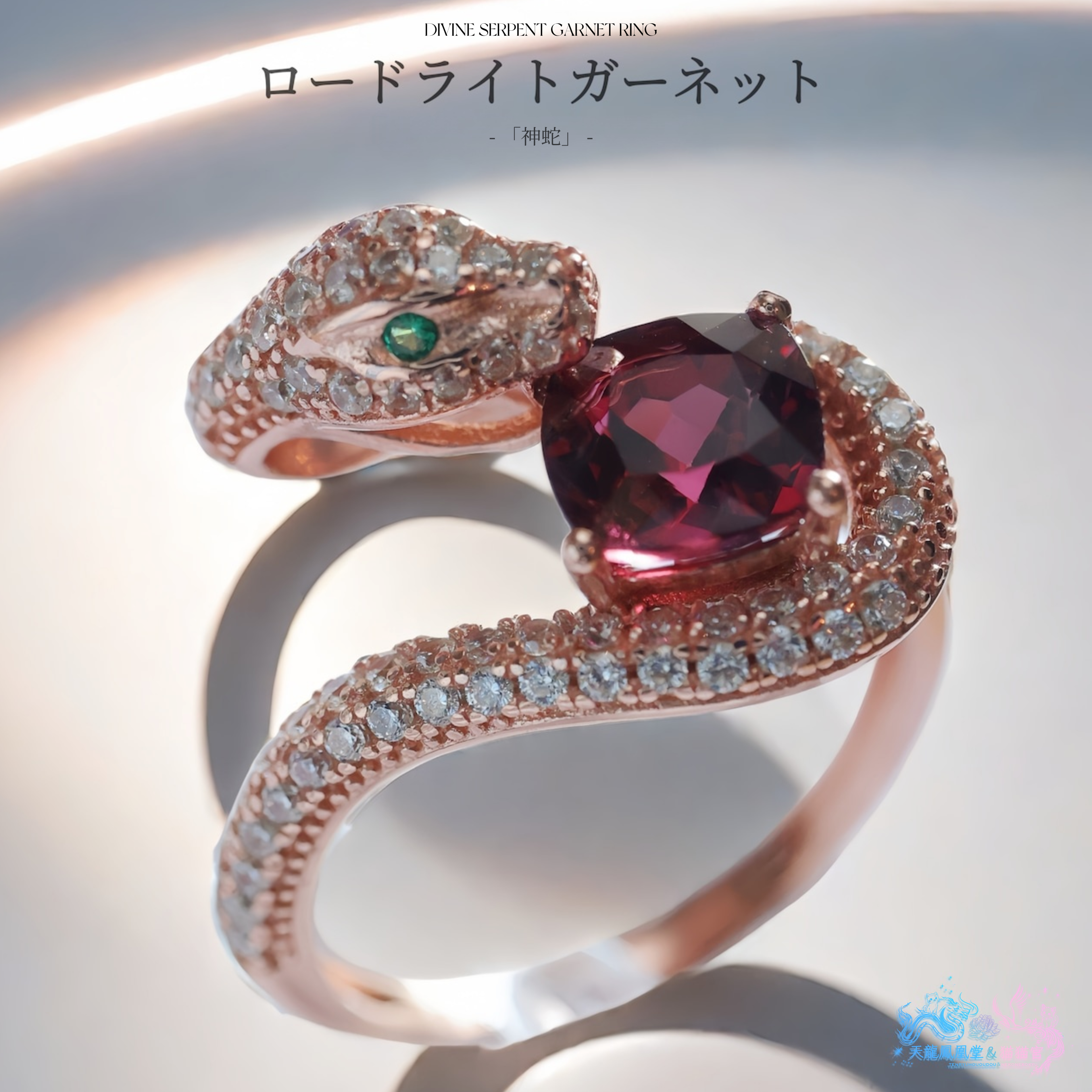 神秘的な蛇の力と情熱の石の力が重なり合うこのリングは、単なる装飾品を超えた特別なお守りのような存在となるでしょう。