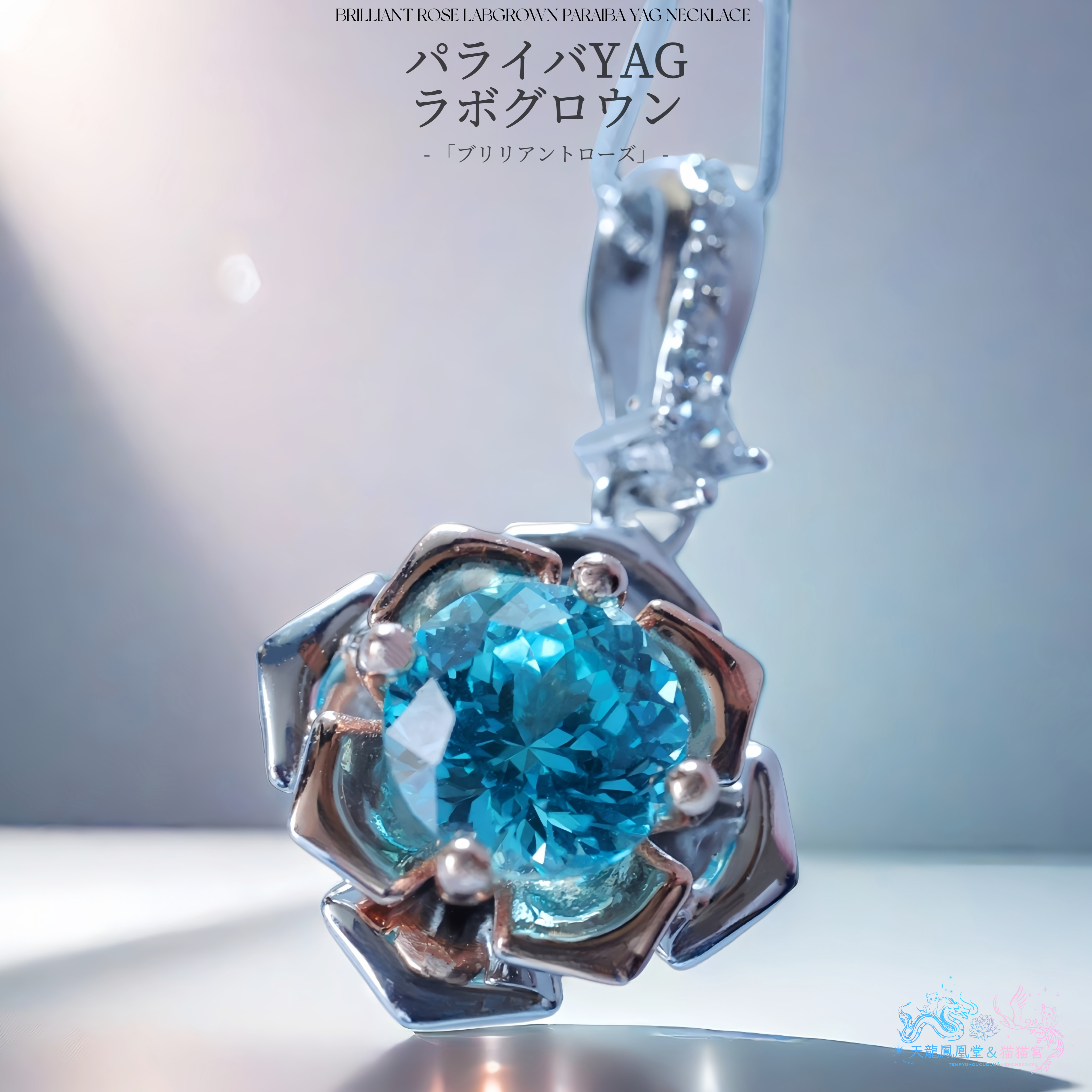 【当店オリジナル】【ブリリアントローズ】パライバ YAG ラボグロウン S925 シルバー 薔薇 ネックレス