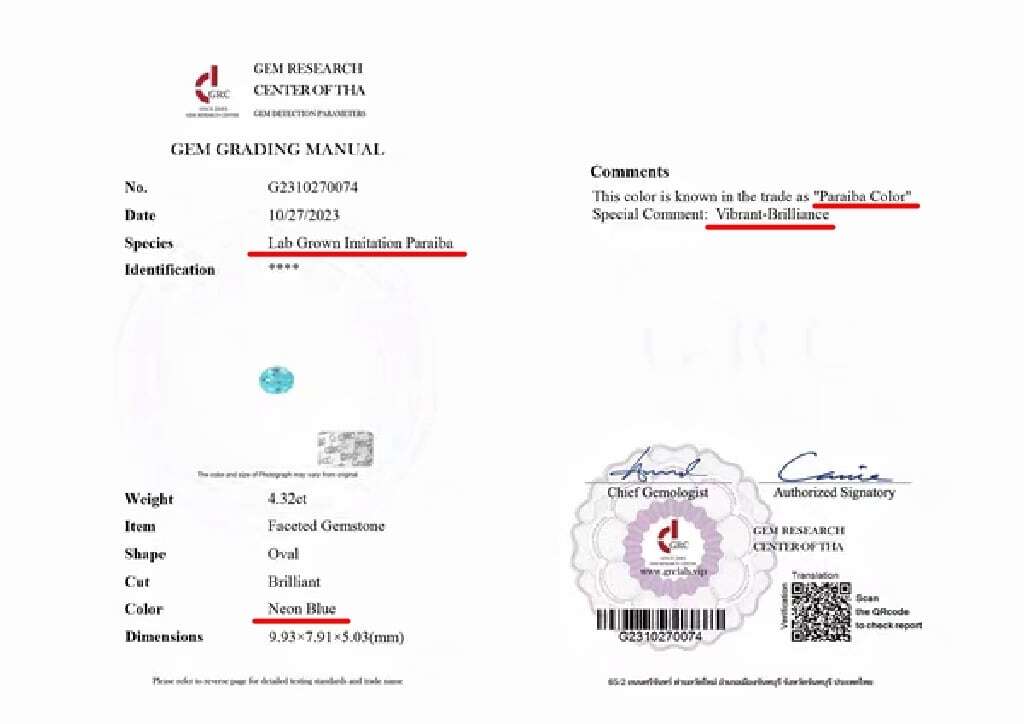 合成石(ラボグロウンを含む)に対しては、特殊なカラー呼称(例:パパラチア、コーンフラワーなど)は記載されません。