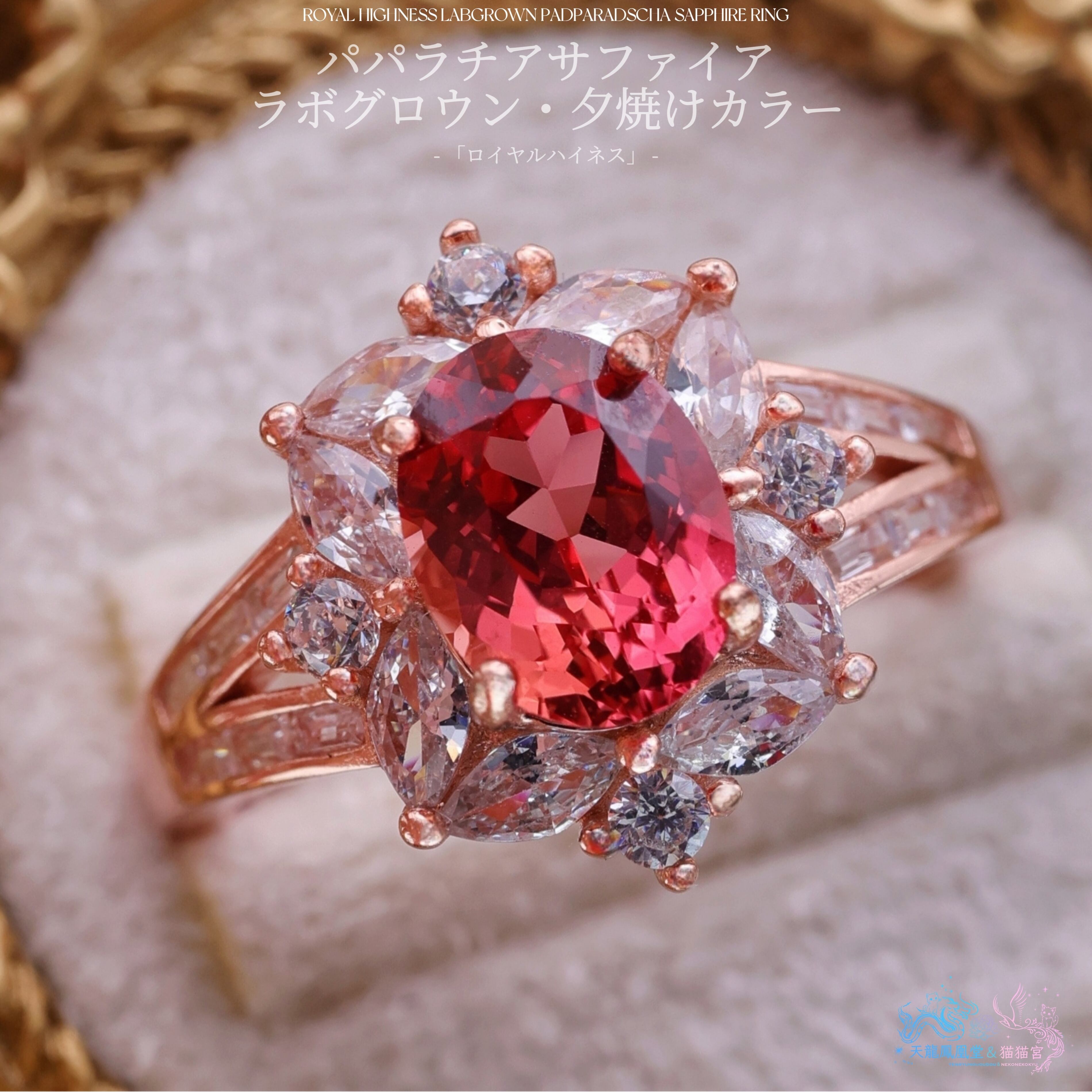 【ロイヤルハイネス】パパラチアサファイア ラボグロウン リング