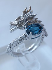【皇龍】ロンドンブルートパーズ 龍 リング シルバー 天然石