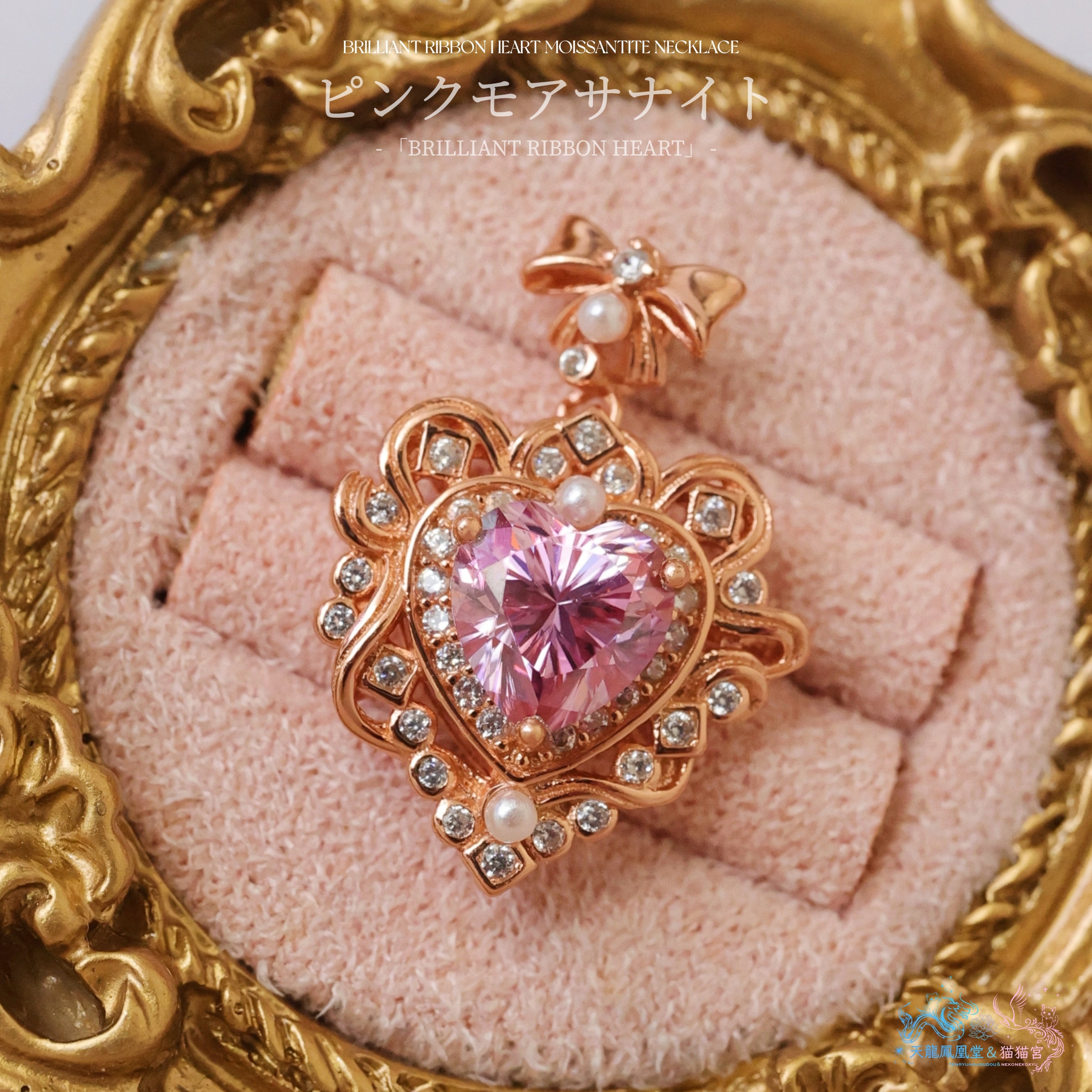 【BRILLIANT RIBBON HEART】ピンクモアサナイト シルバー ハート ネックレス
