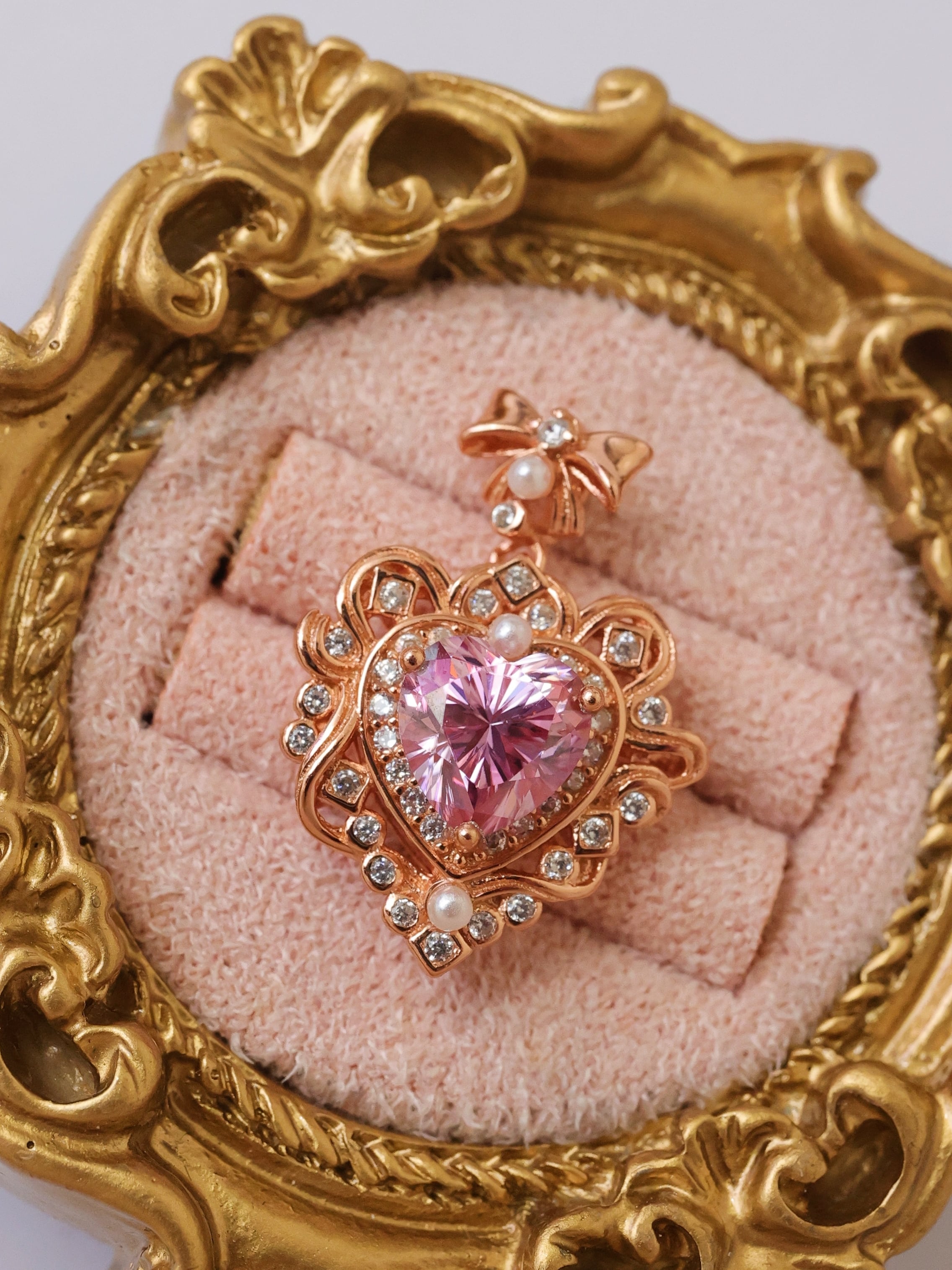 アメリカ直輸入のVVSクラス・ピンクモアサナイトを使用した、華やかなハートシェイプのペンダントです。