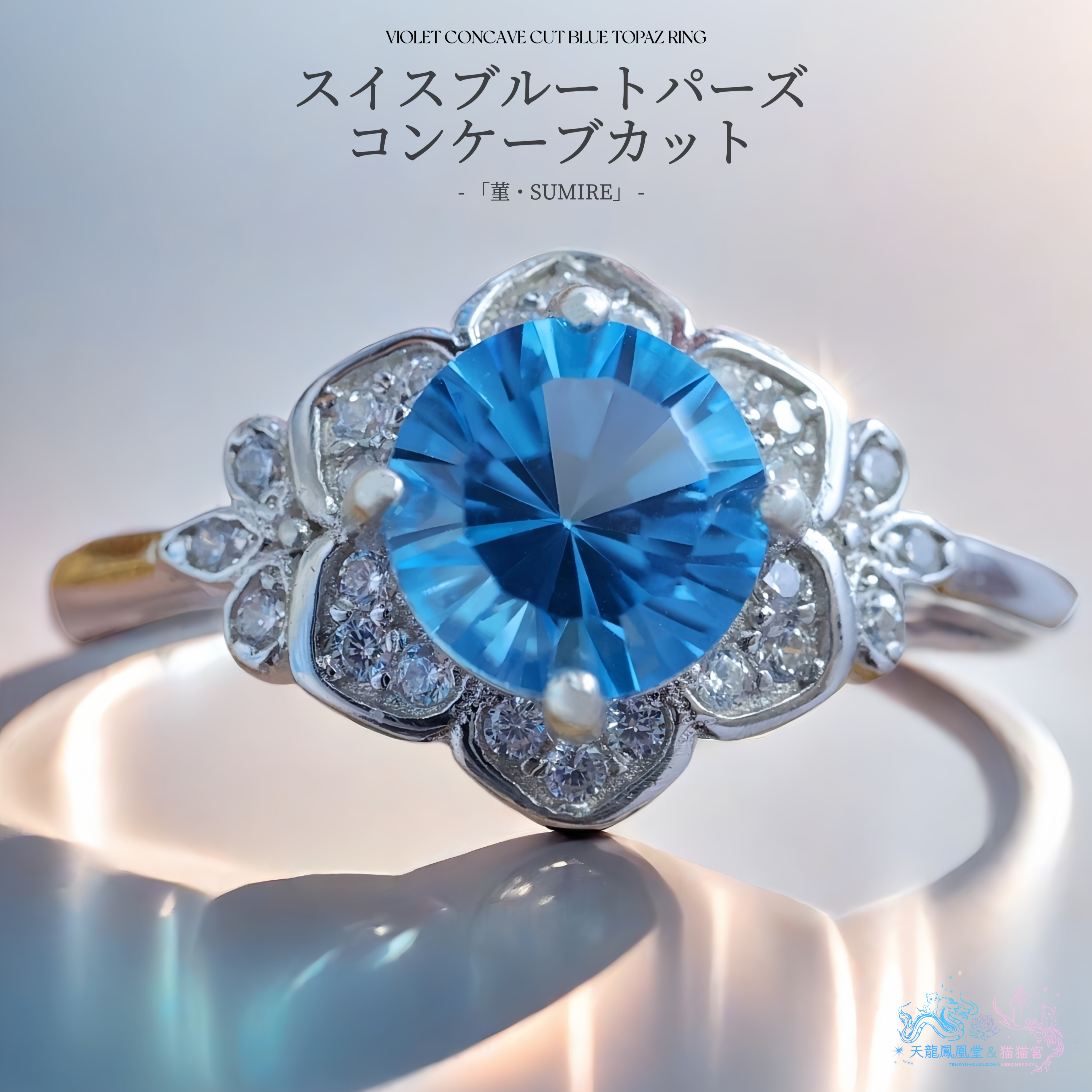 【菫・SUMIRE】11月誕生石 スイスブルートパーズ コンケーブカット 天然石 シルバー リング