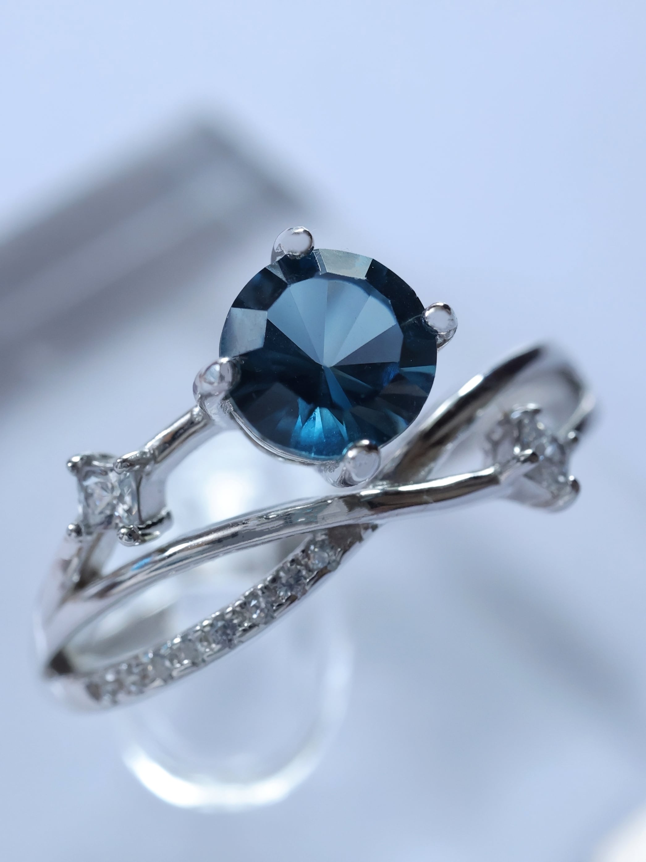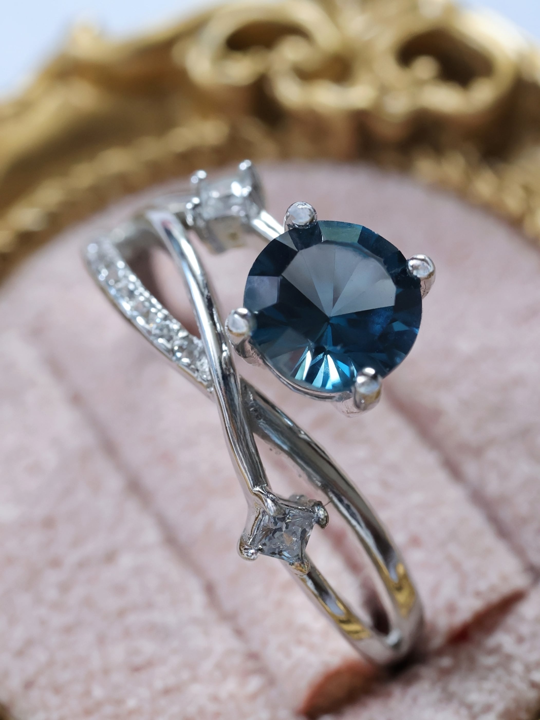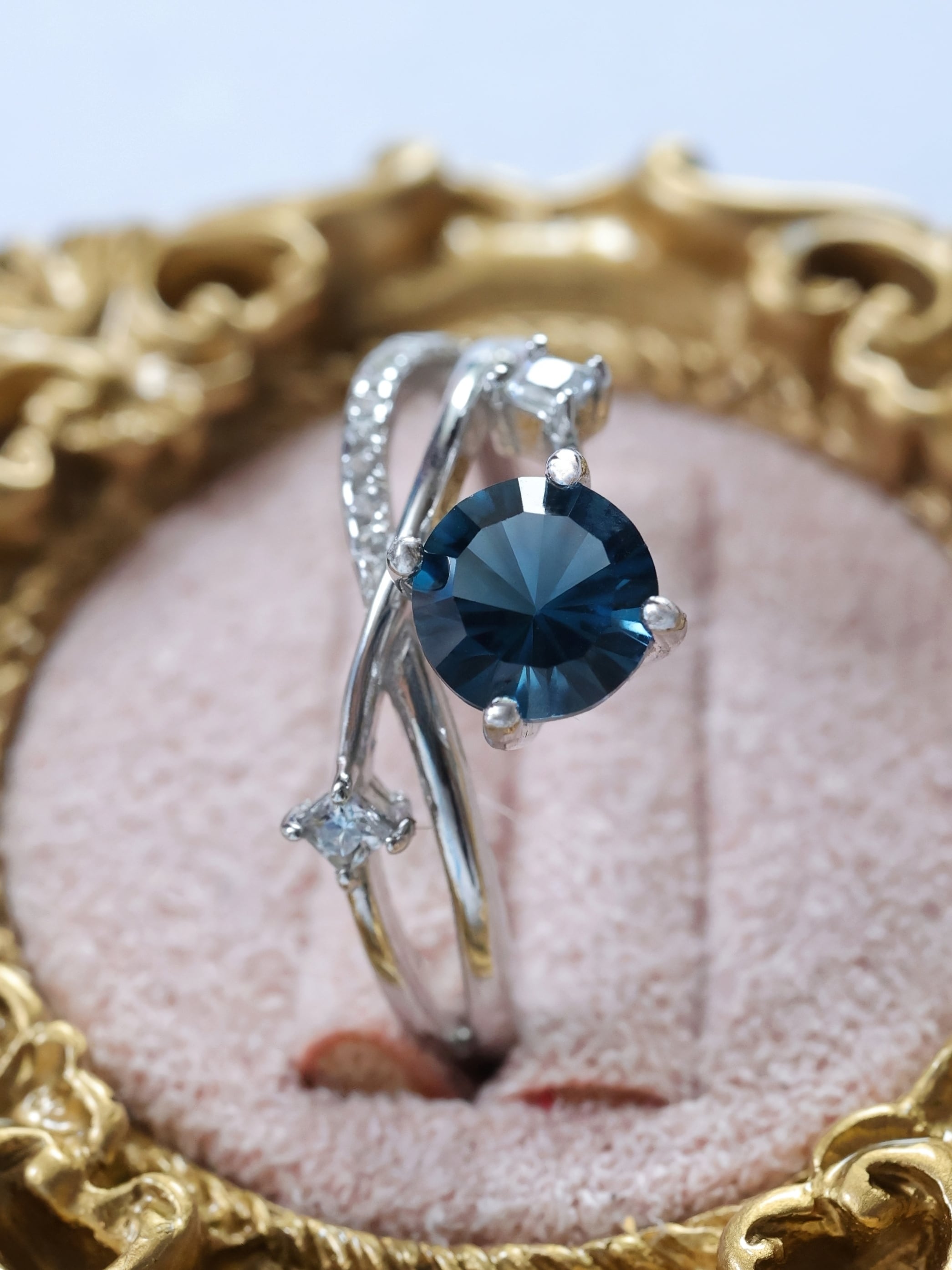 地金にはSilver925にロジウムコーティングを施し、ロンドンブルートパーズの深遠な青をより一層引き立てています。