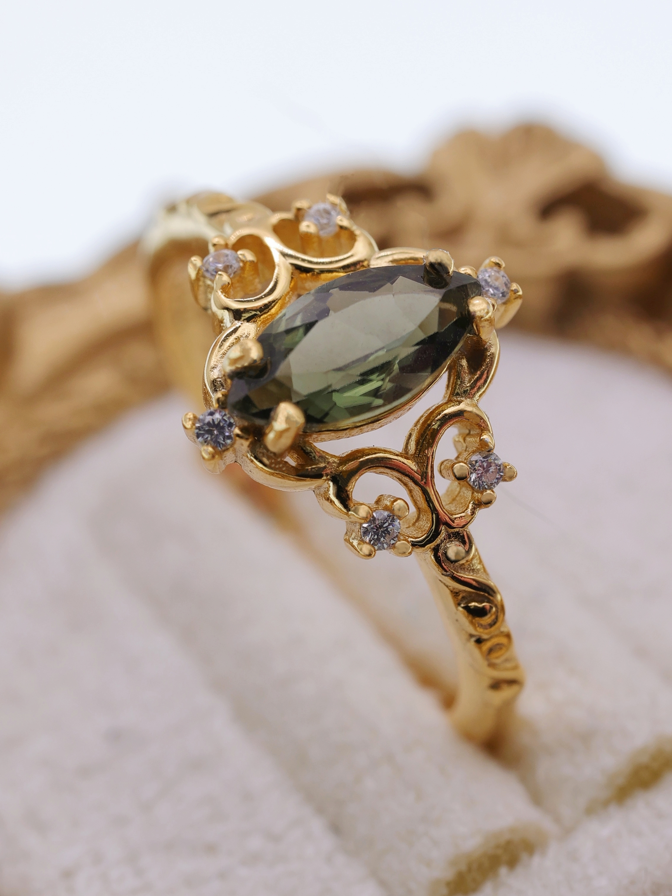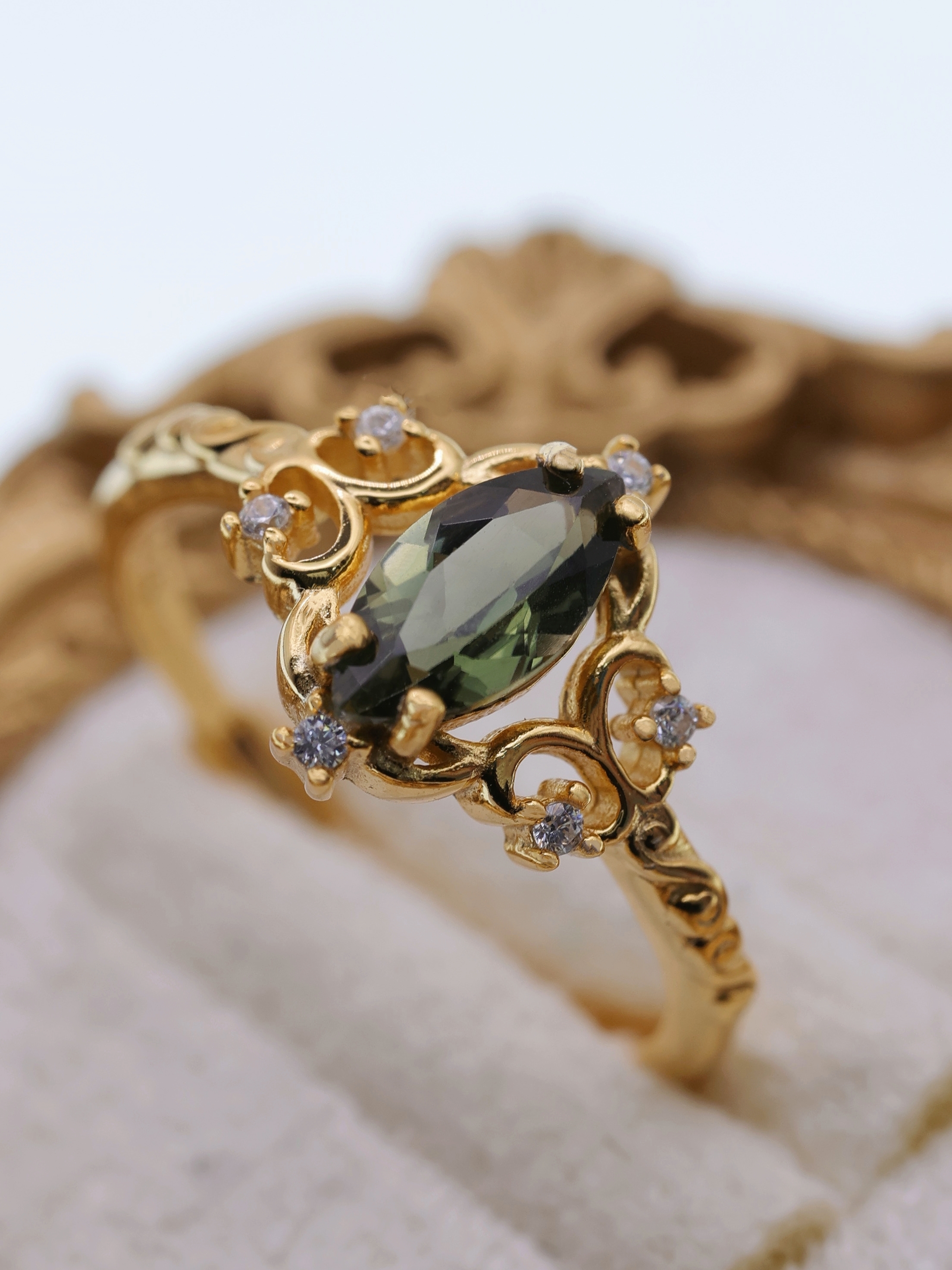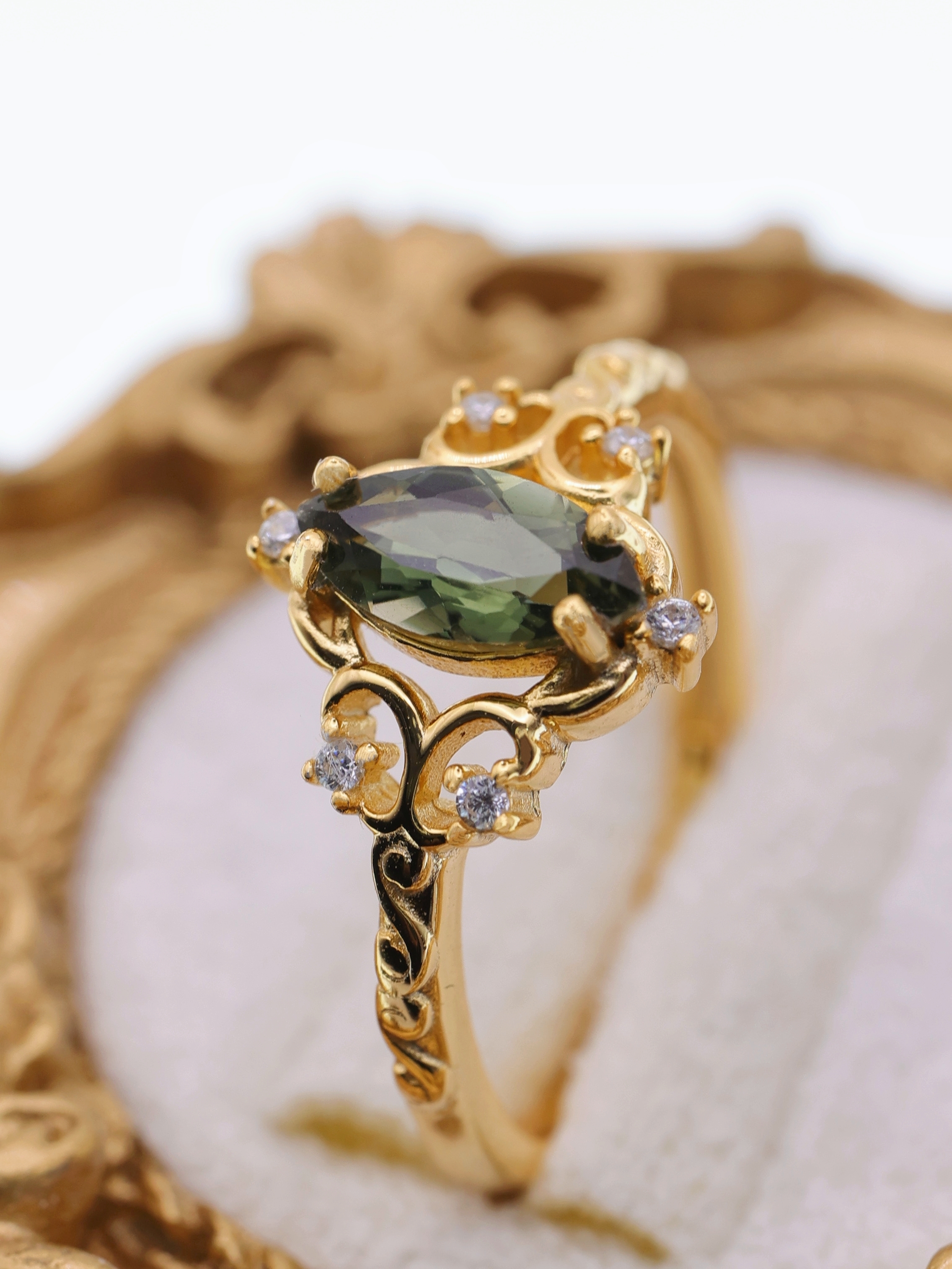 自然が生み出す豊かな緑の煌めきを宿す、上質なグリーントルマリンを主役にしたリングです。