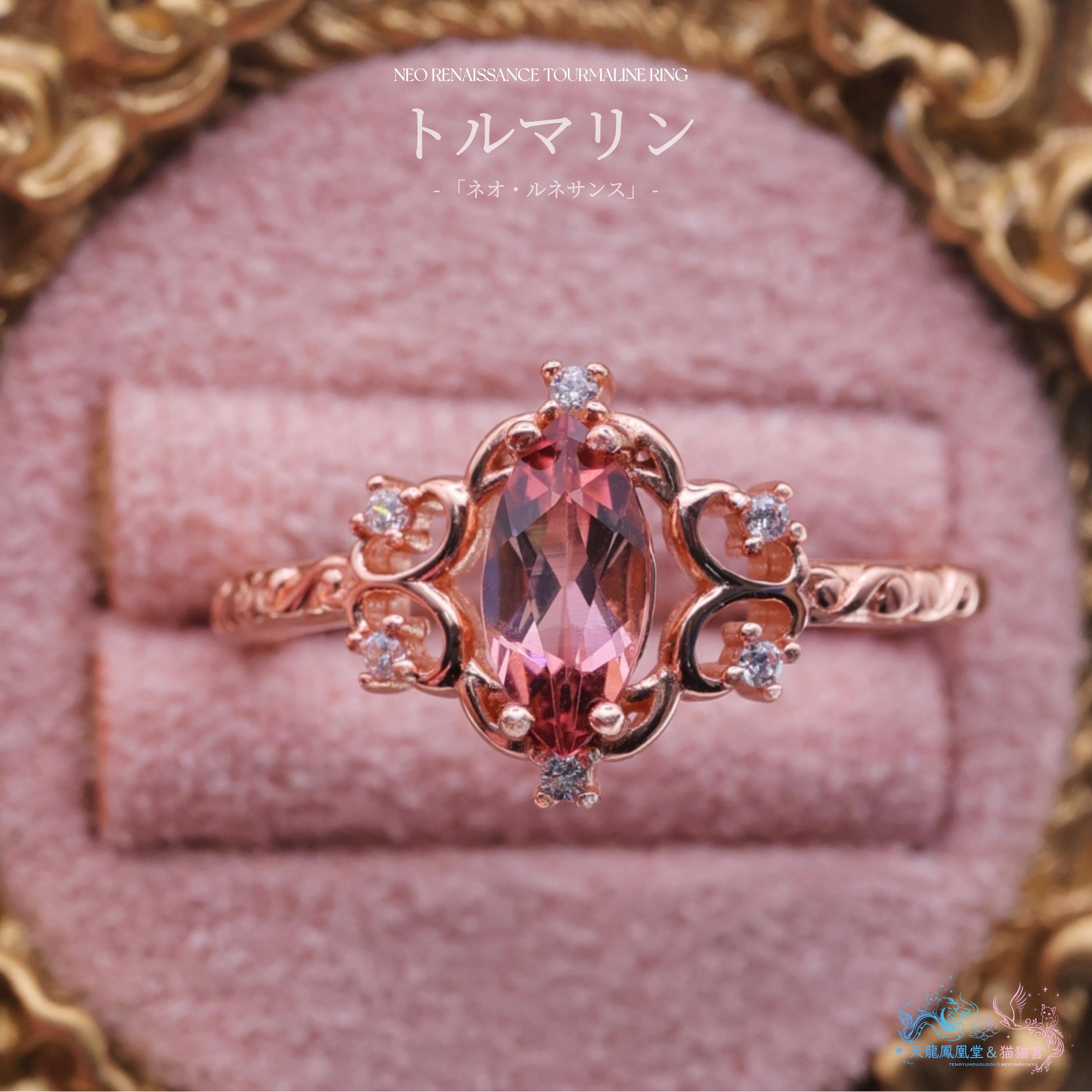 地金にはSilver925を使用し、K18ピンクゴールド仕上げを施すことで、ピンクトルマリンの柔らかな色彩をより一層引き立てています。