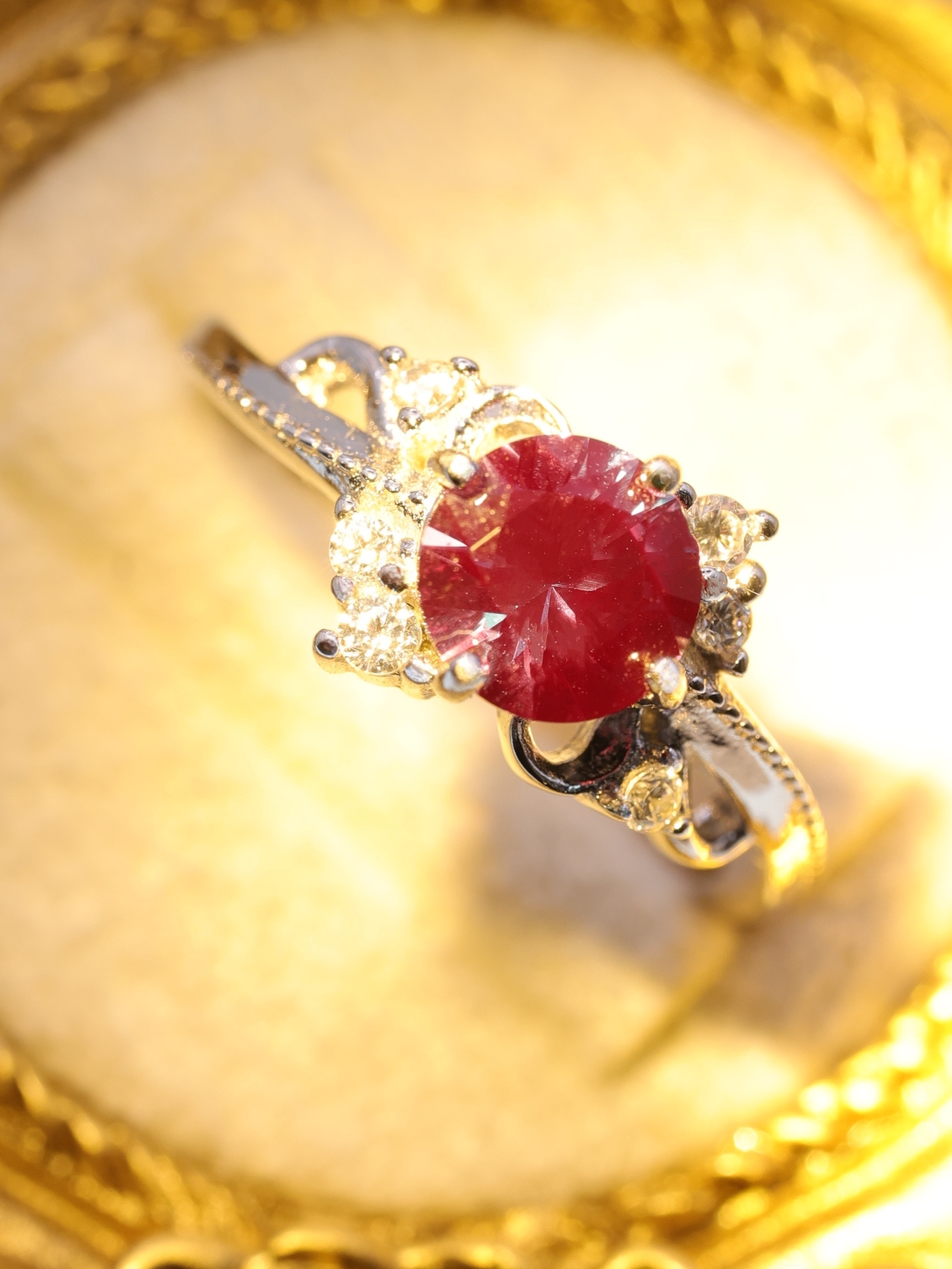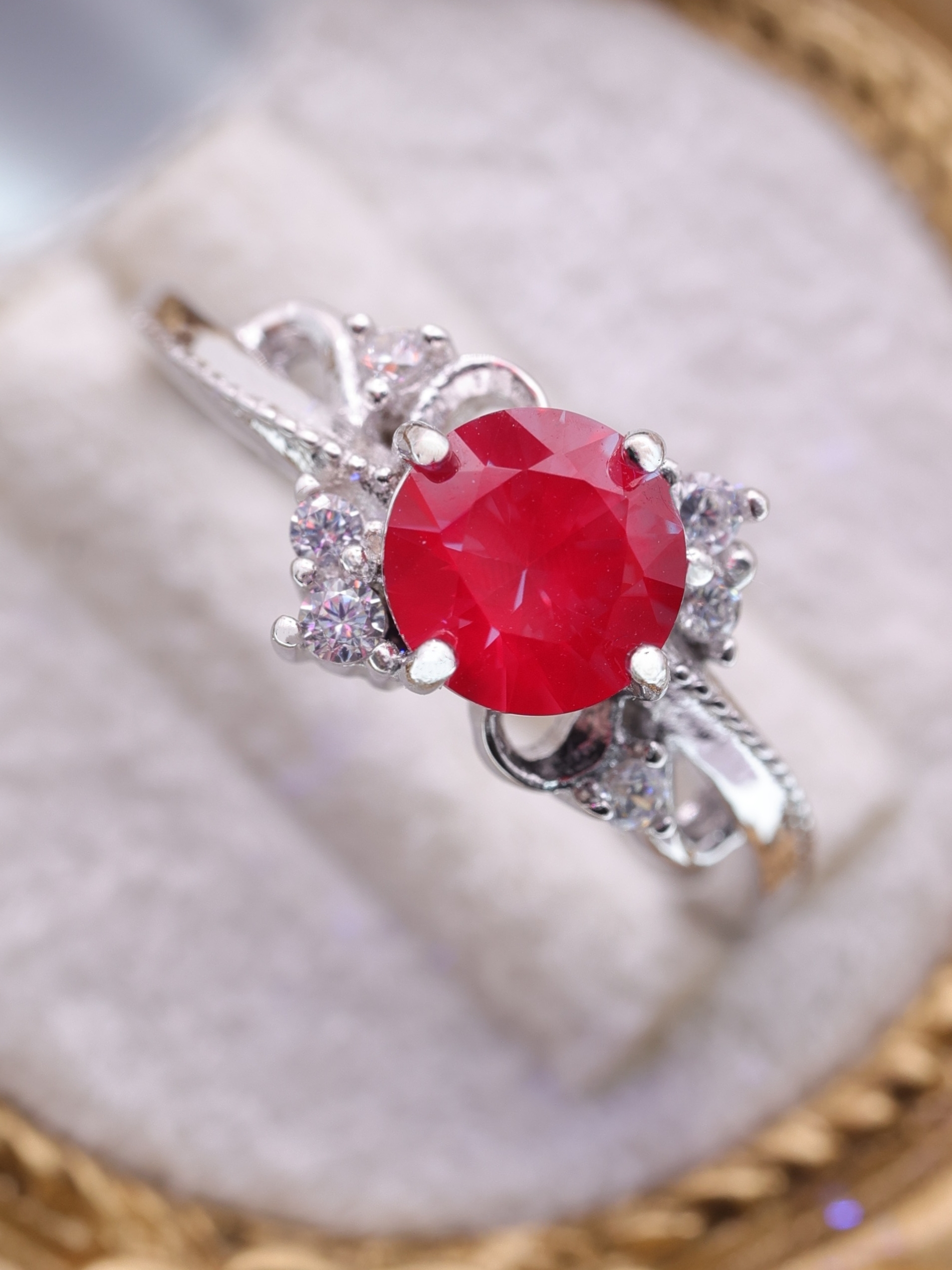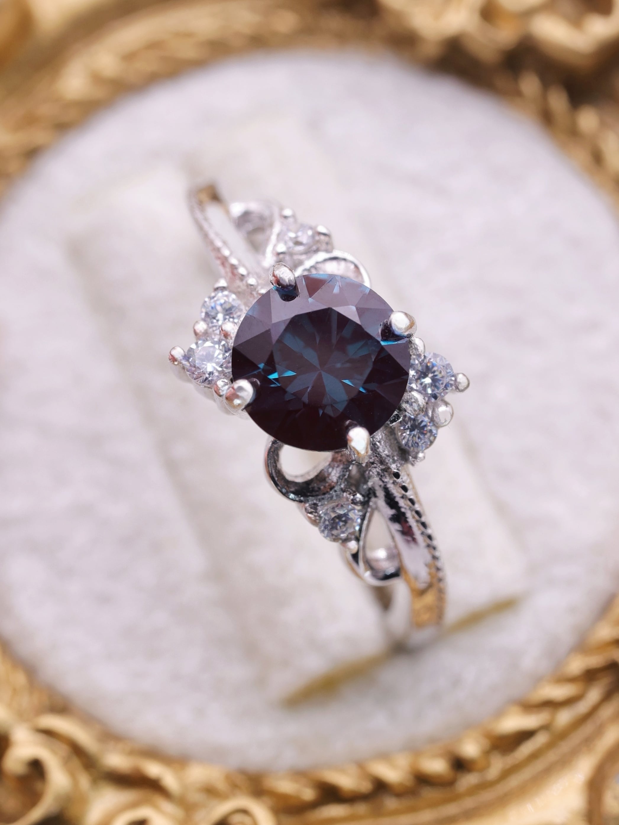 アームには、煌めきを添える7Aグレードの高品質キュービックジルコニアをバランスよく配し、精緻なミル打ちの装飾で気品をプラス。曲線を描く透かし模様が繊細さを演出し、まるで宮廷の装飾品のような優雅な佇まいに仕上がっています。