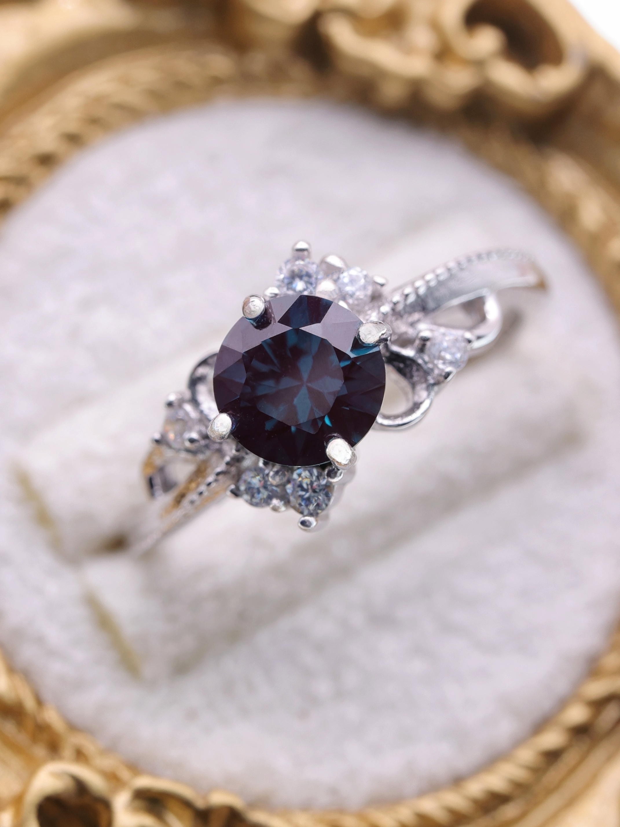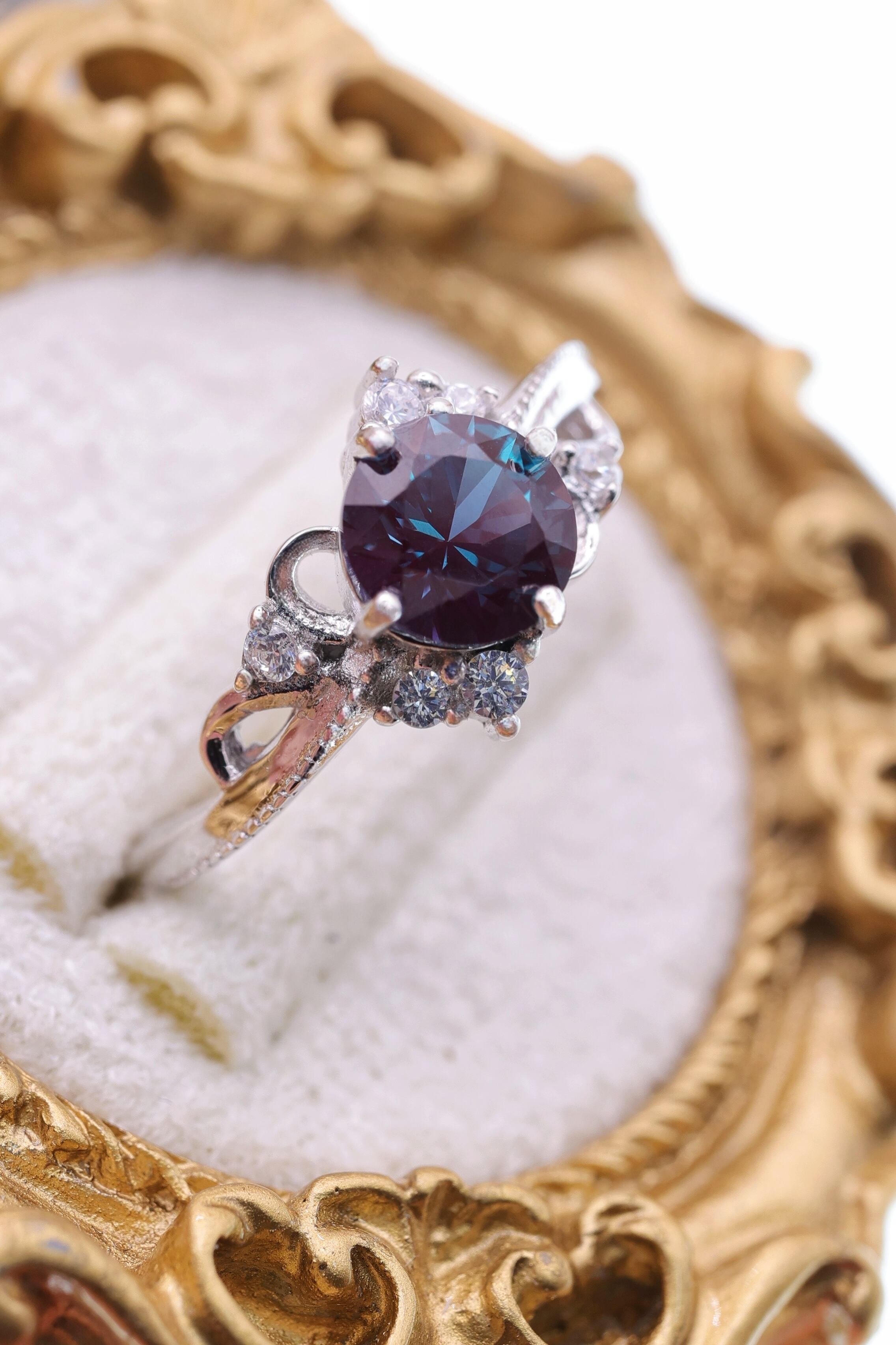 天然と同じ化学組成を持ち、同じく深みあるグリーンブルーから赤紫への劇的なカラーチェンジを見せます。