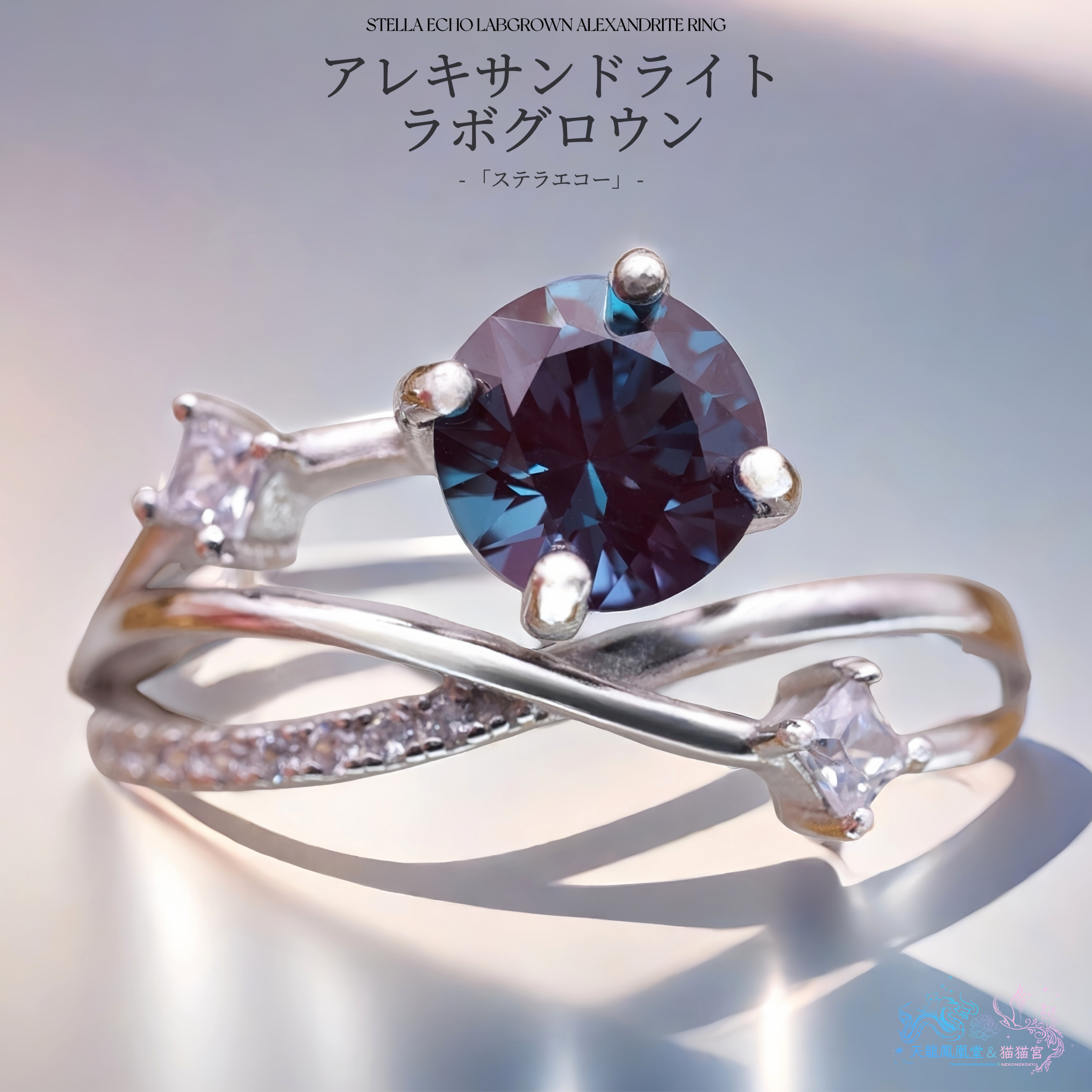 【ステラエコー】アレキサンドライト ラボグロウン 天然石 シルバー リング