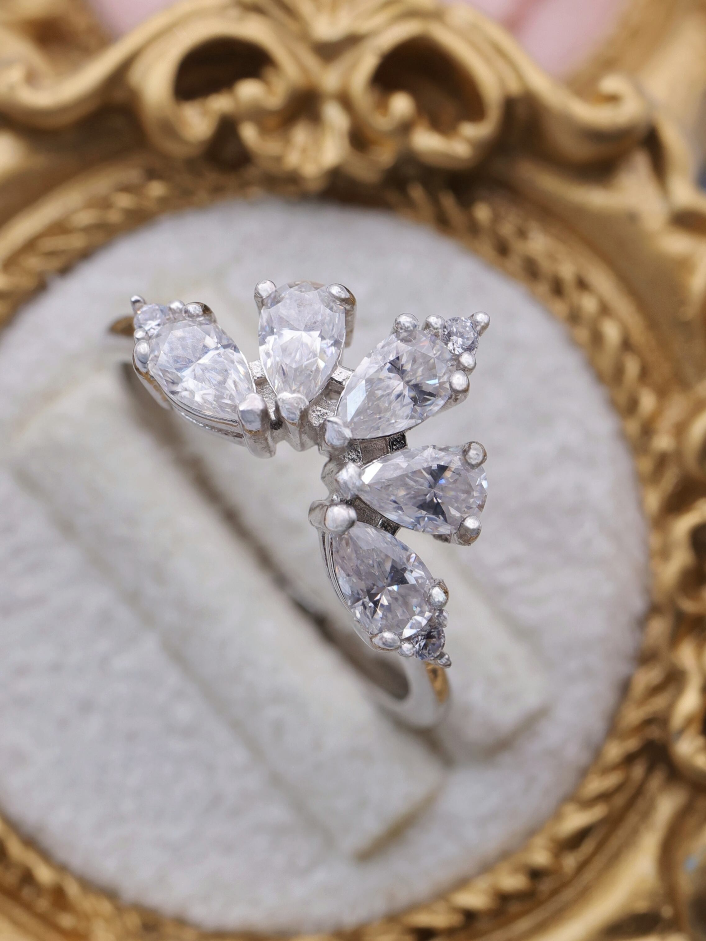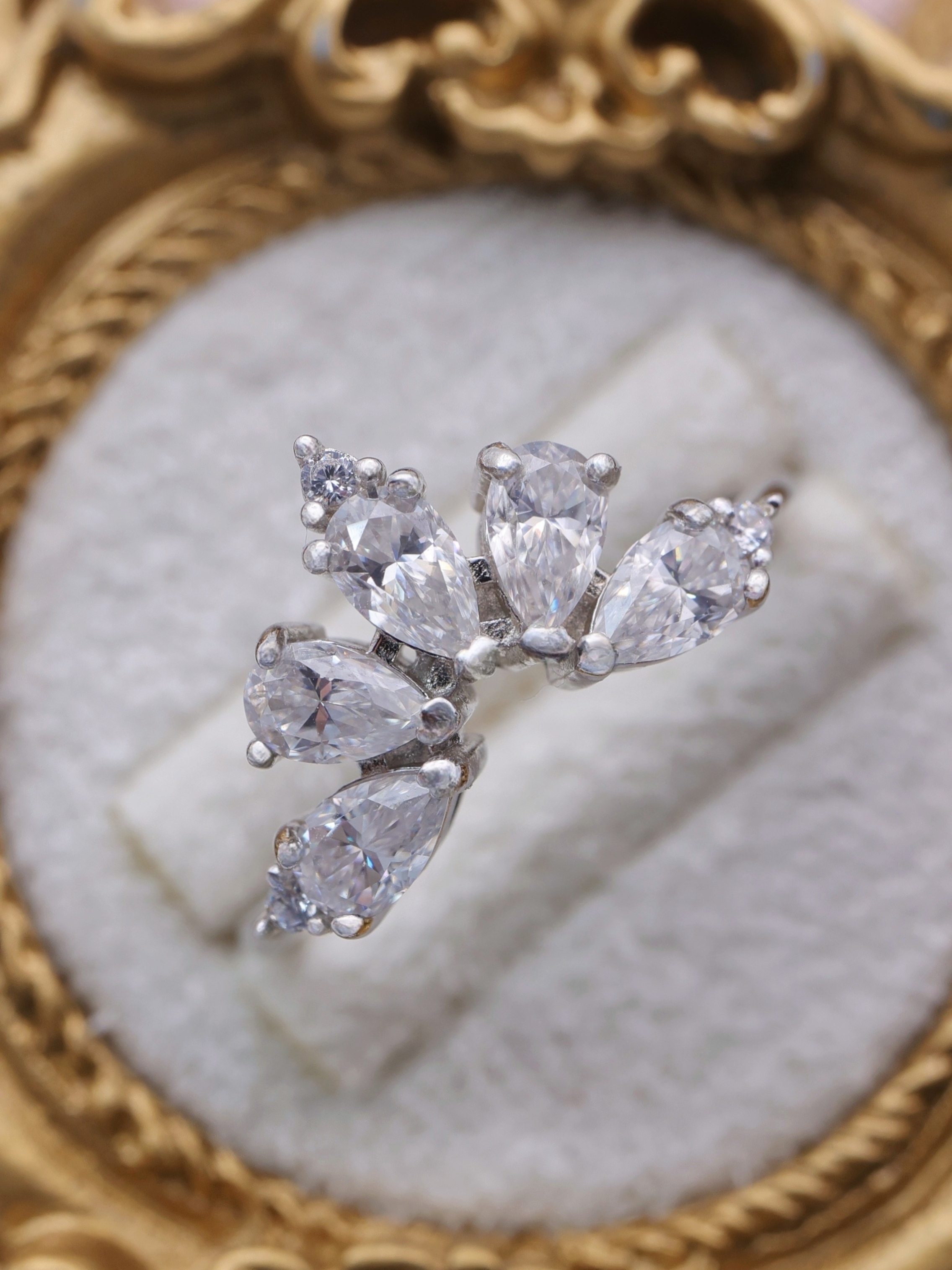 大粒のペアシェイプを王冠のように並べることで、花びらのような優雅さと、クラウンの名にふさわしい気品を併せ持つデザインに仕上げました。