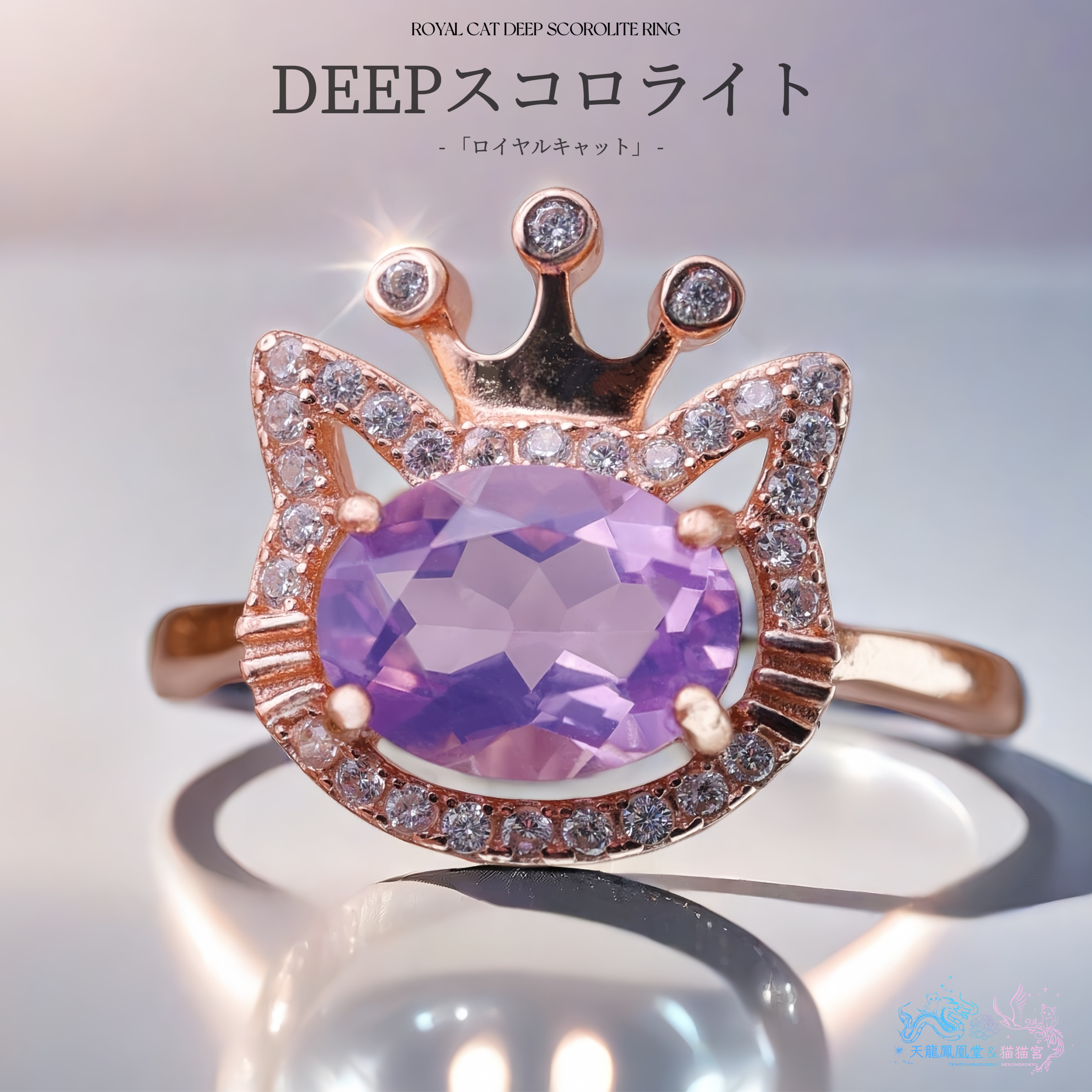 【当店オリジナル】【ロイヤルキャット】DEEPスコロライト 猫 リング シルバー 天然石
