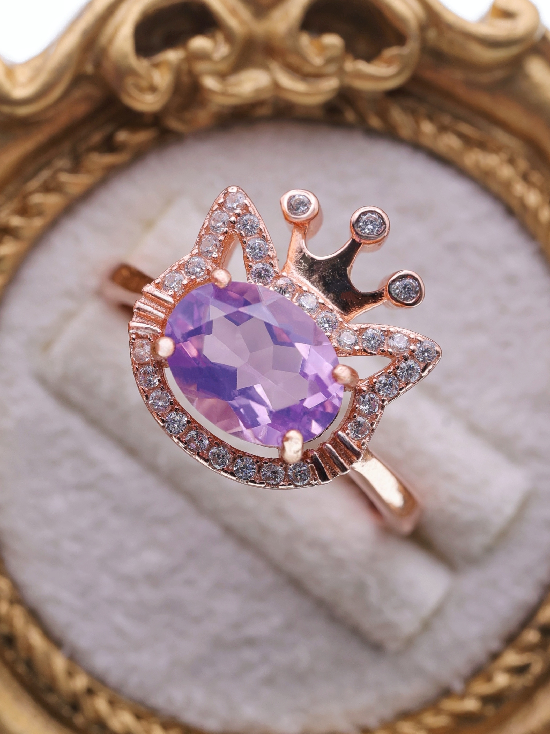 王冠・耳・ひげをかたどった地金部分には、上質なキュービックジルコニアをセッティングし、繊細な煌めきでリング全体を華やかに引き立てています。