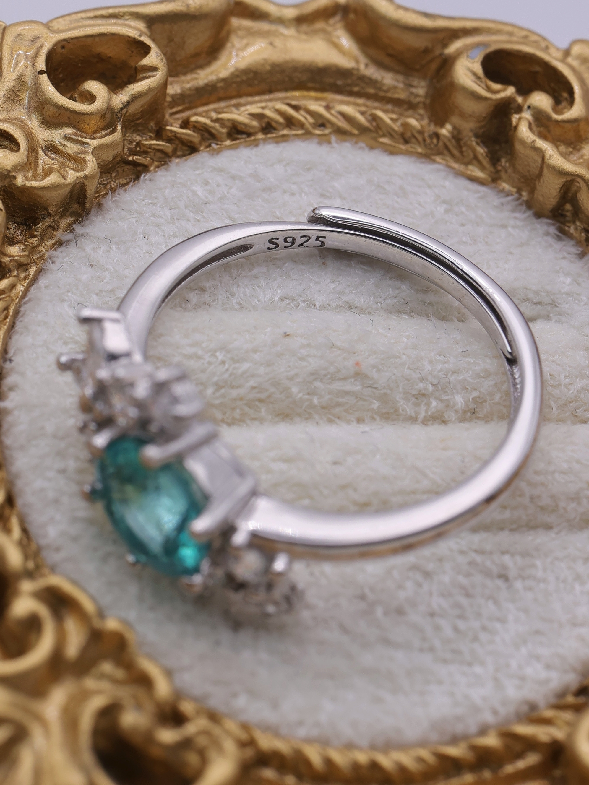 その鮮やかで神秘的なブルーグリーンは、まるで空と海の境界に差すそよ風のように、見る角度によって異なる表情を見せてくれます。
