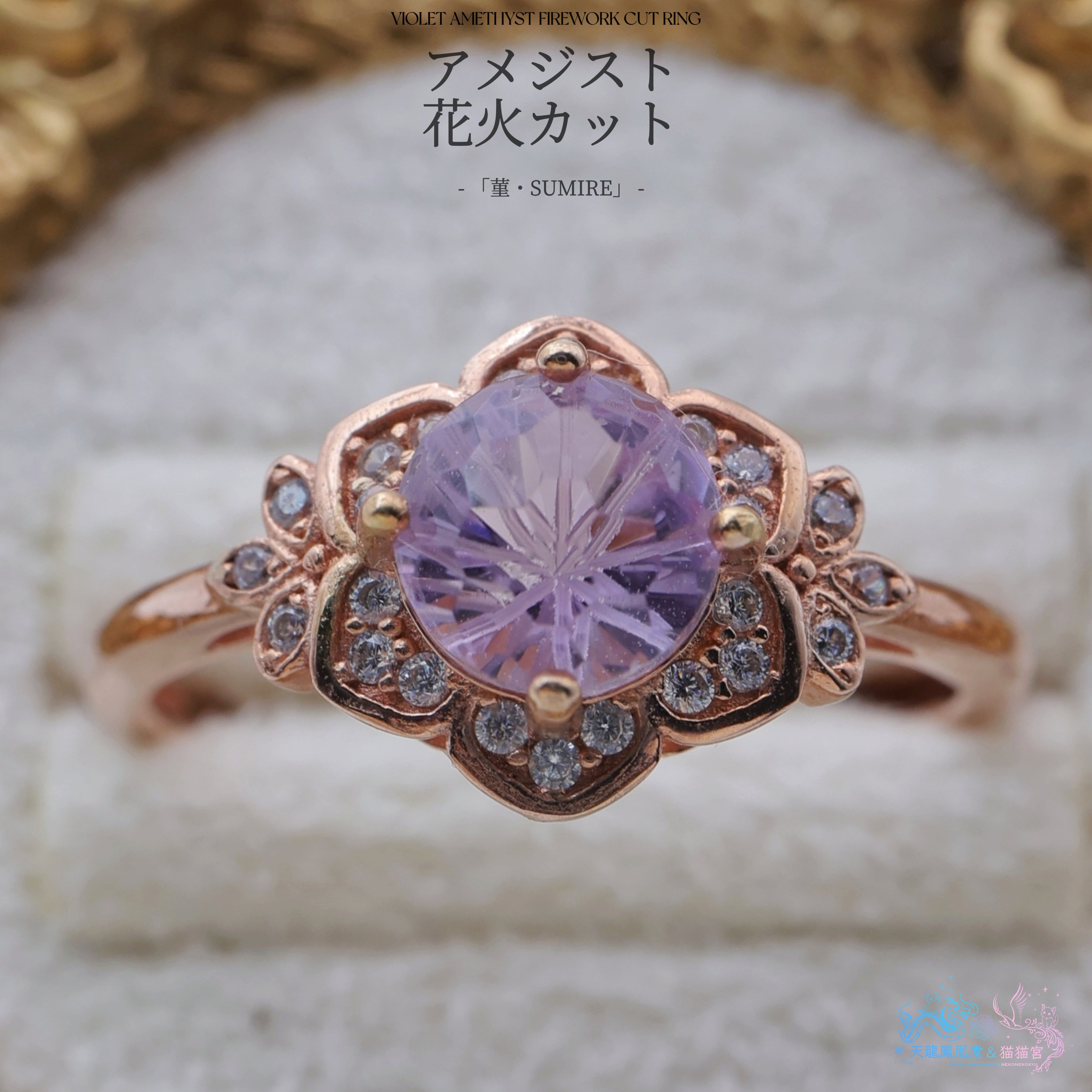 【菫・SUMIRE】2月誕生石 アメジスト 花火カット 天然石 シルバー リング