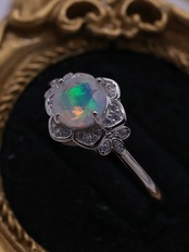 オパールを包むようにデザインされた花びらモチーフには、7Aジルコニアをセッティング。繊細な煌めきが、オパールの幻想的な光を一層引き立て、優雅で洗練された印象を与えます。