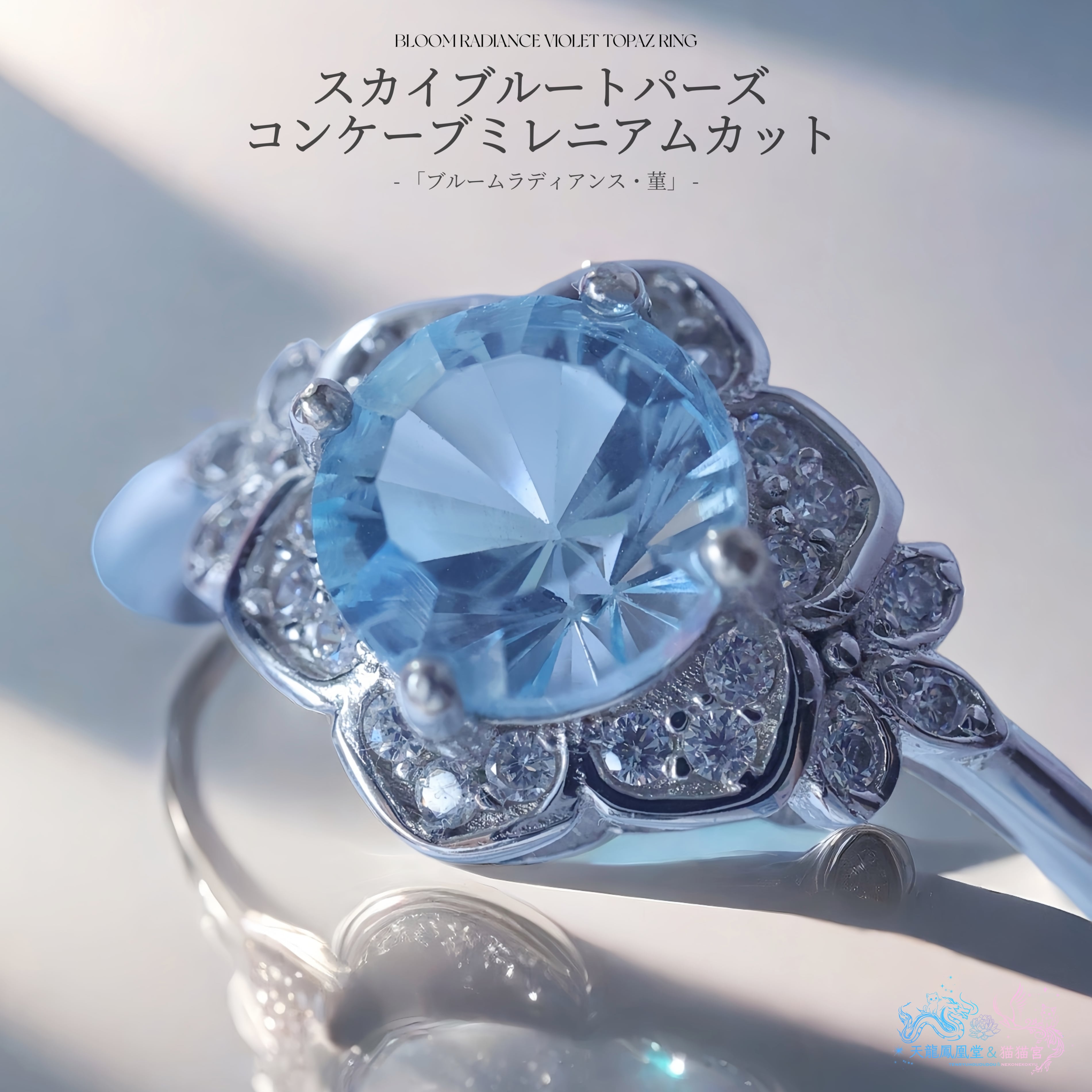 【菫・SUMIRE】11月誕生石 スカイブルートパーズ コンケーブカット天然石 S925 シルバー リング