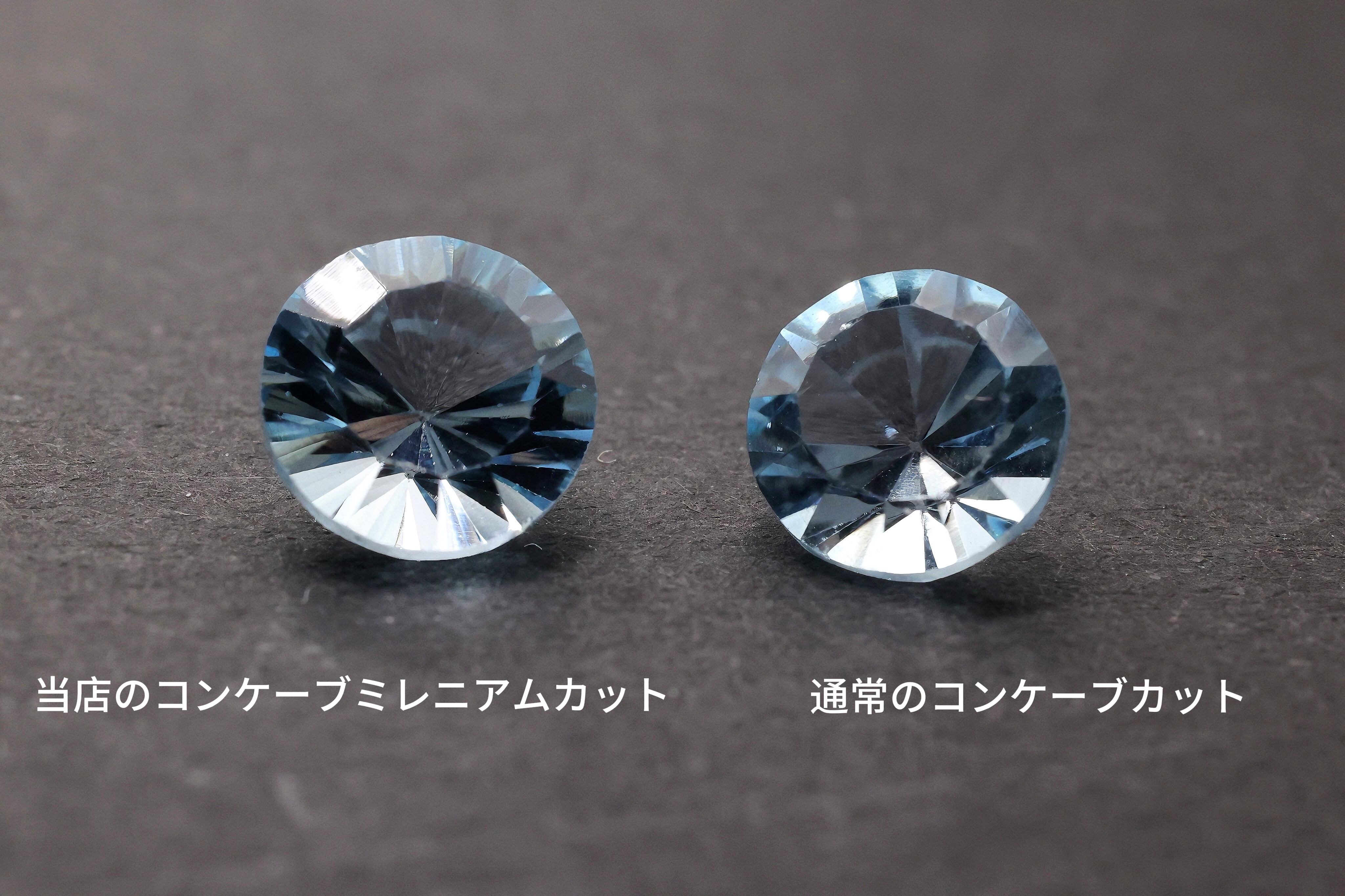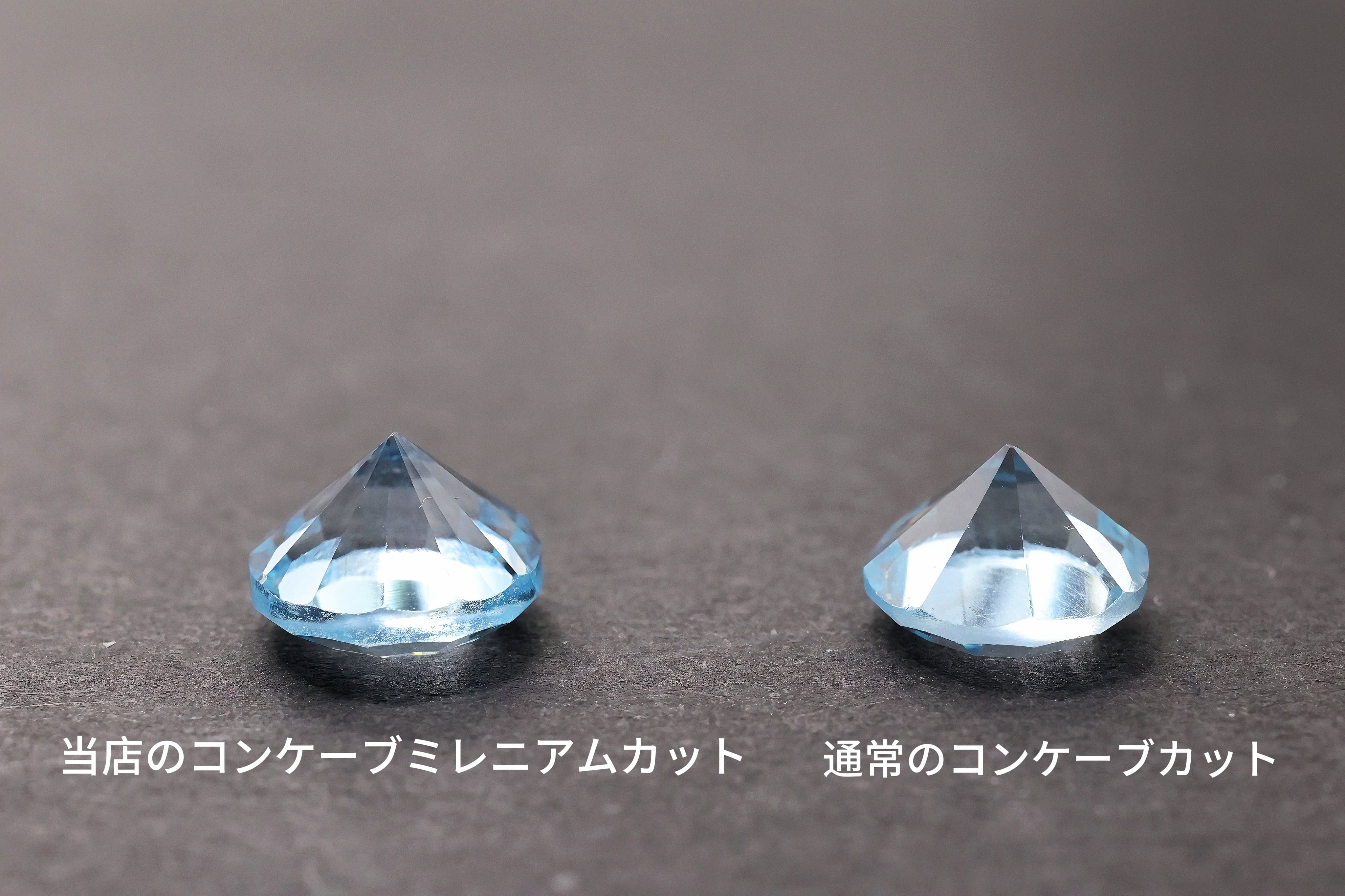 当店のコンケーブミレニアムカットは、一般的なコンケーブカットよりもカット面の数を増やし、さらに美しい輝きを実現しています。