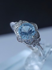 まるで青空の下で咲く一輪の花を指先に宿したかのような、美しいリングです。