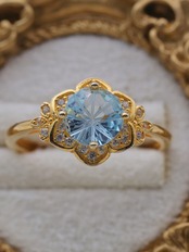 このリングをつけた瞬間、あなたの手元はまるで澄んだ冬の空に浮かぶ氷の花のように輝きます。スカイブルートパーズの透明感あるブルーが、肌に溶け込むように馴染み、落ち着いた印象と洗練されたエレガンスを演出します。